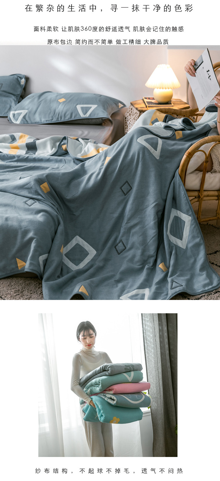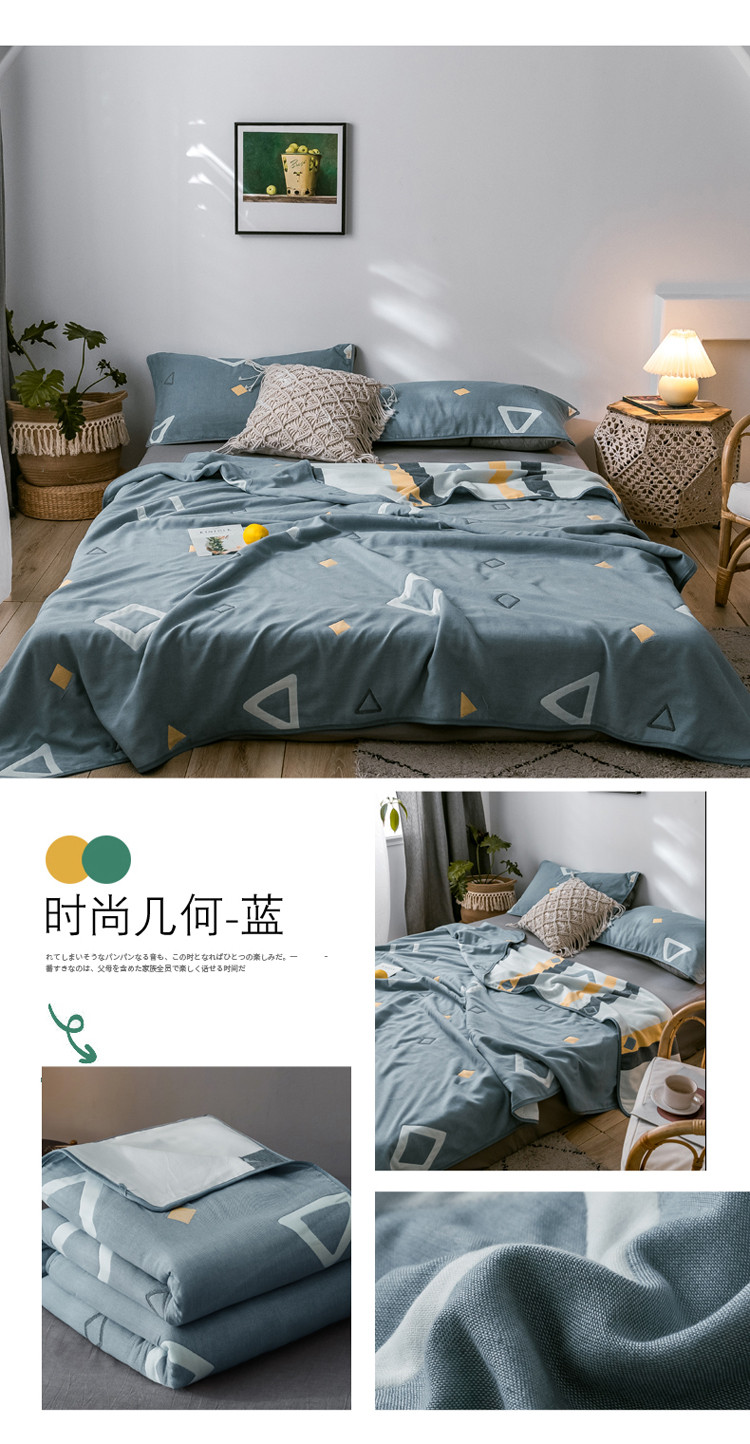 商品名称:朴尔 2021新款时尚六层全棉纱布毛巾被时尚几何-蓝