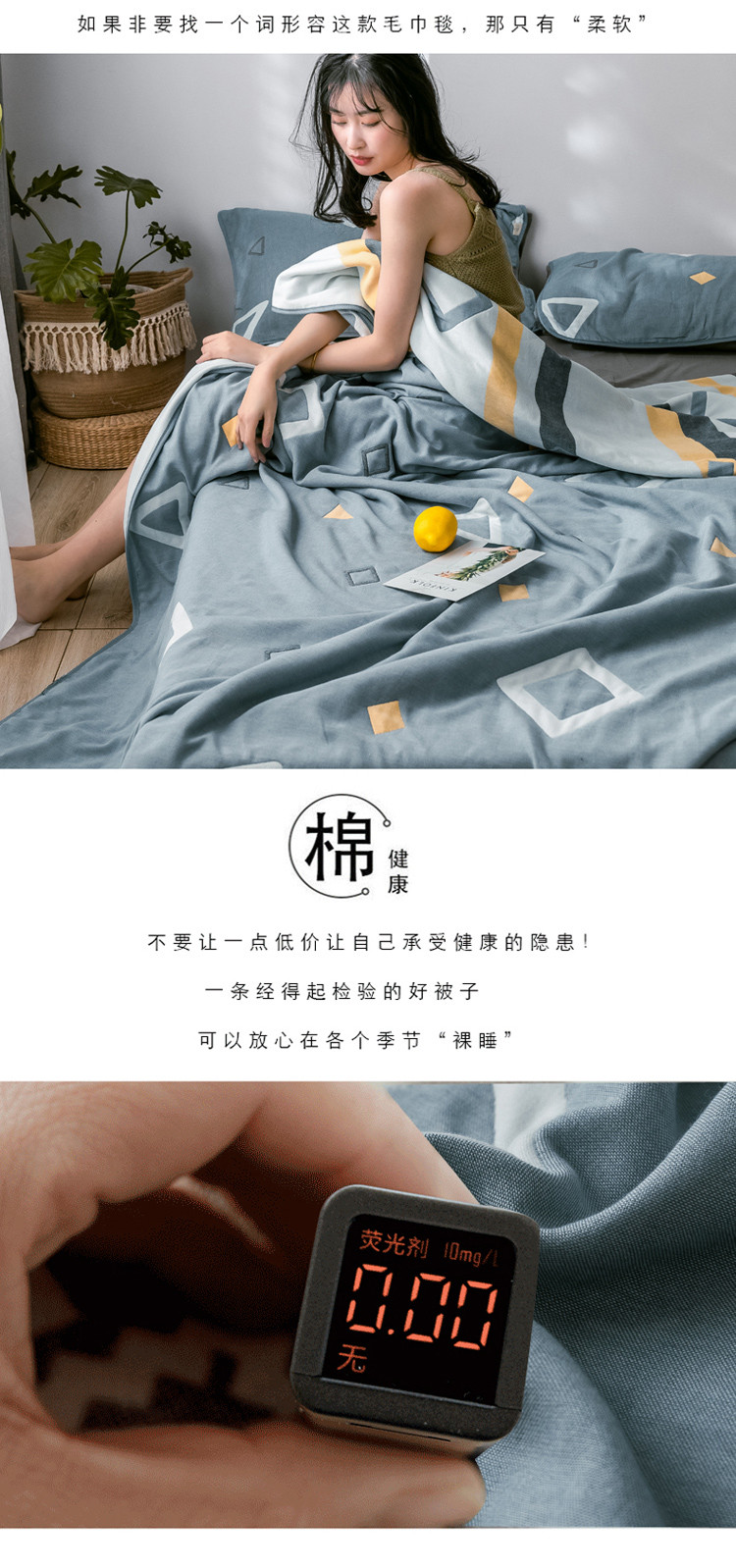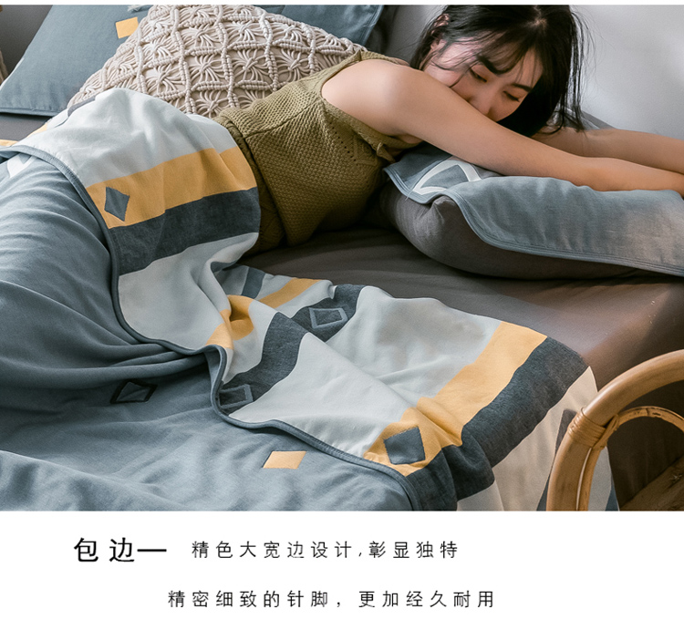 朴尔 2021新款时尚六层全棉纱布毛巾被时尚几何-蓝
