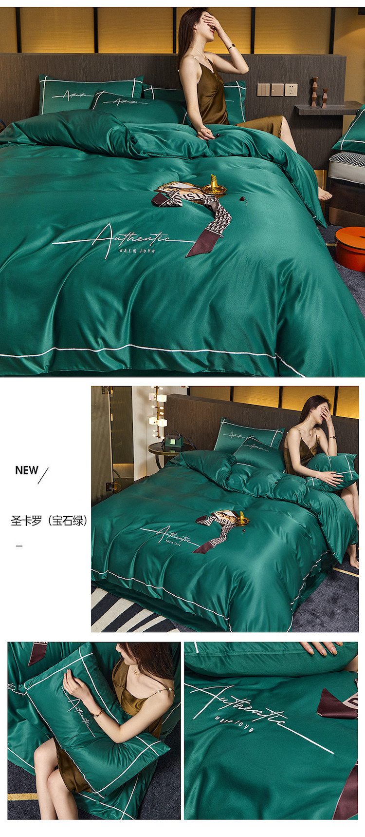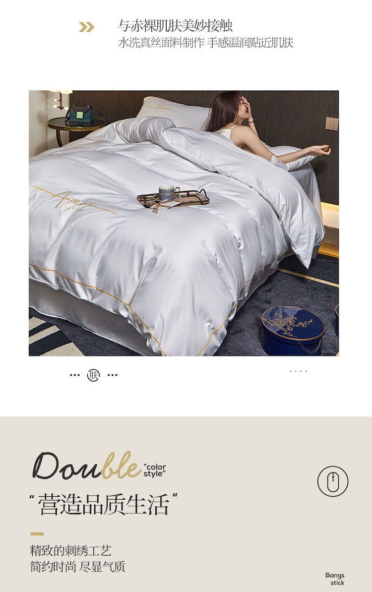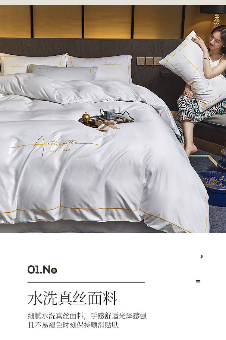 (总)凡客2021春夏新款60支水洗真丝绣花四件套学生宿舍三件套圣卡罗系列