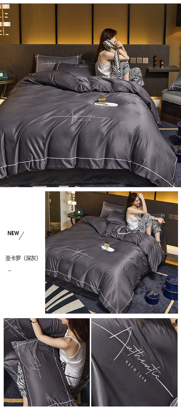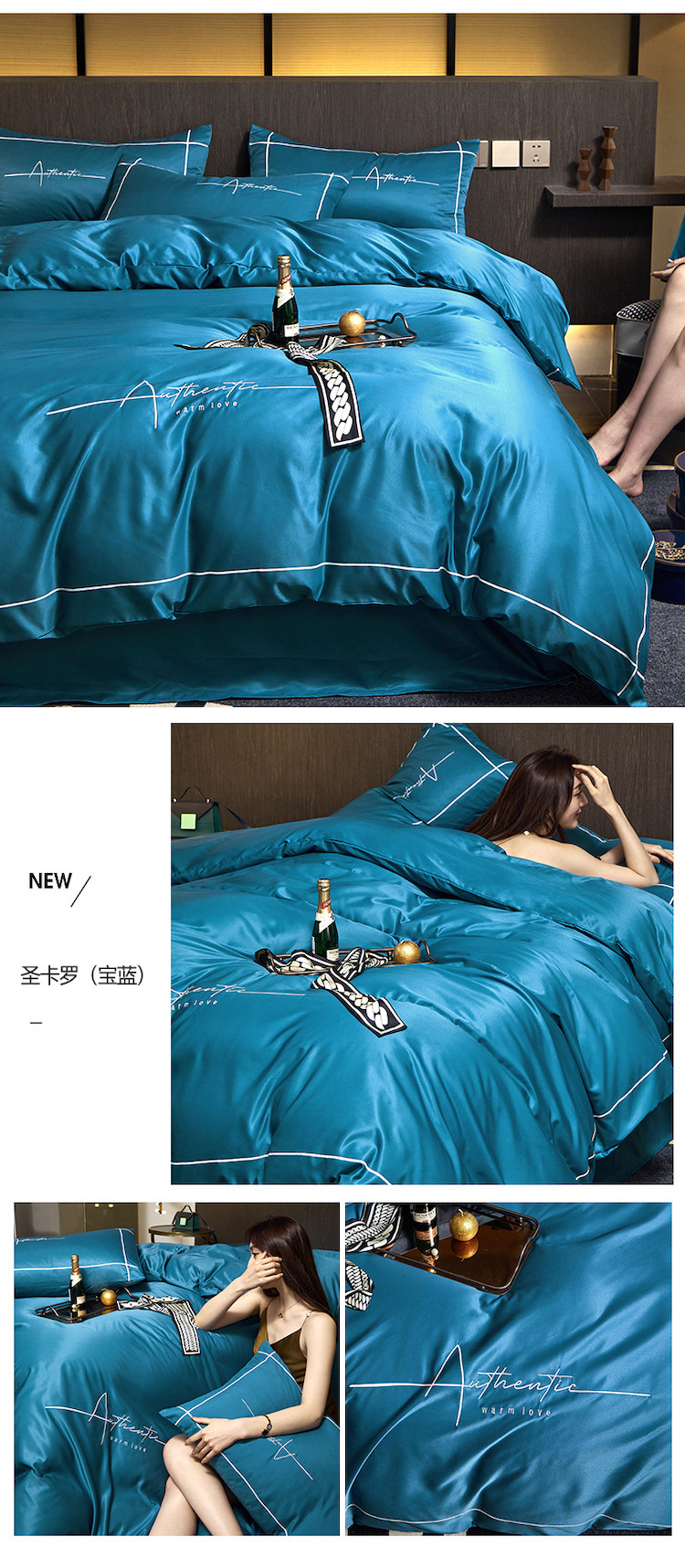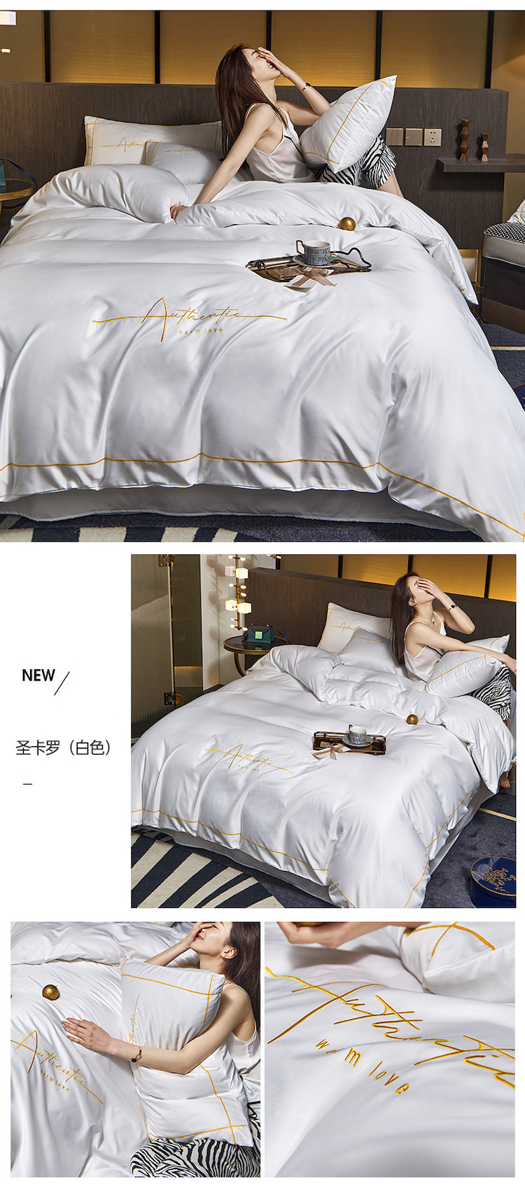 (总)凡客2021春夏新款60支水洗真丝绣花四件套学生宿舍三件套圣卡罗系列