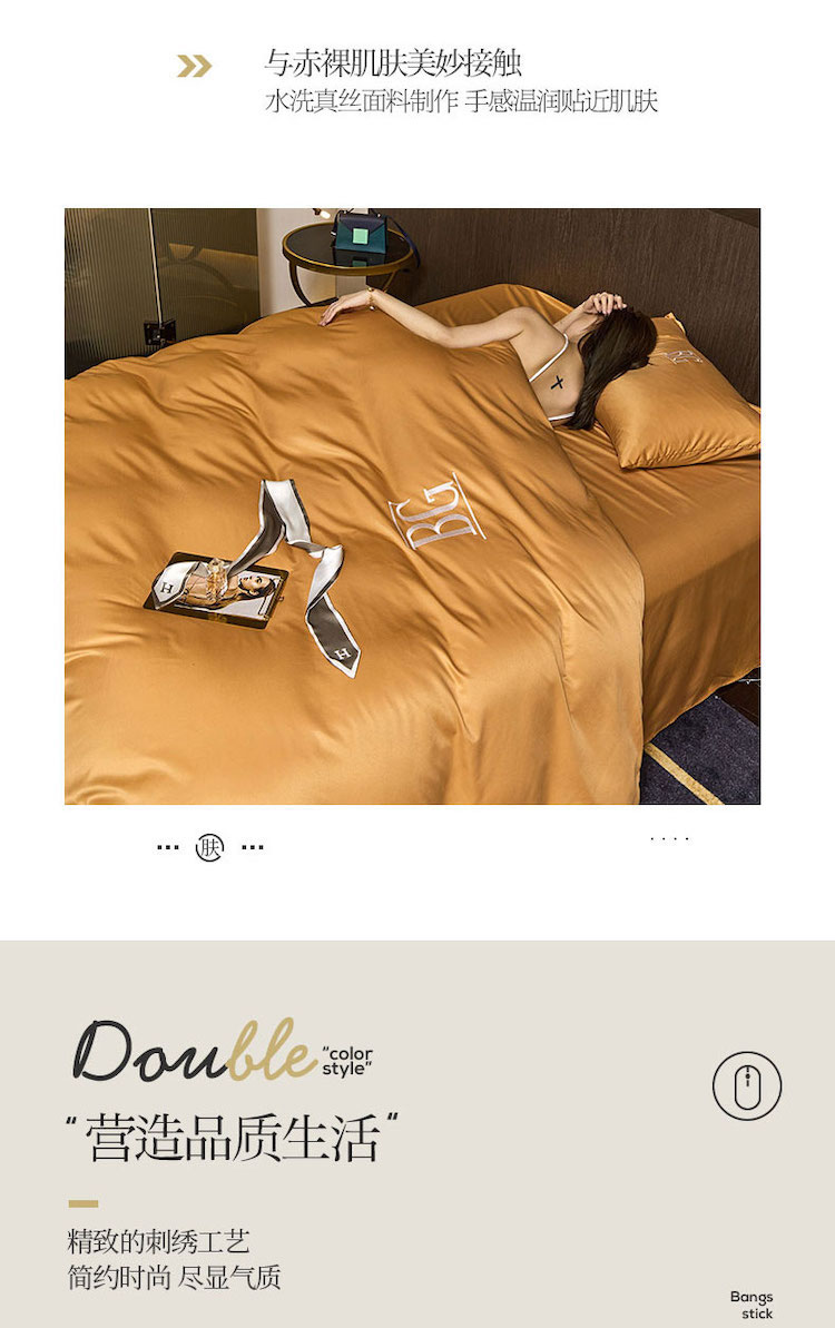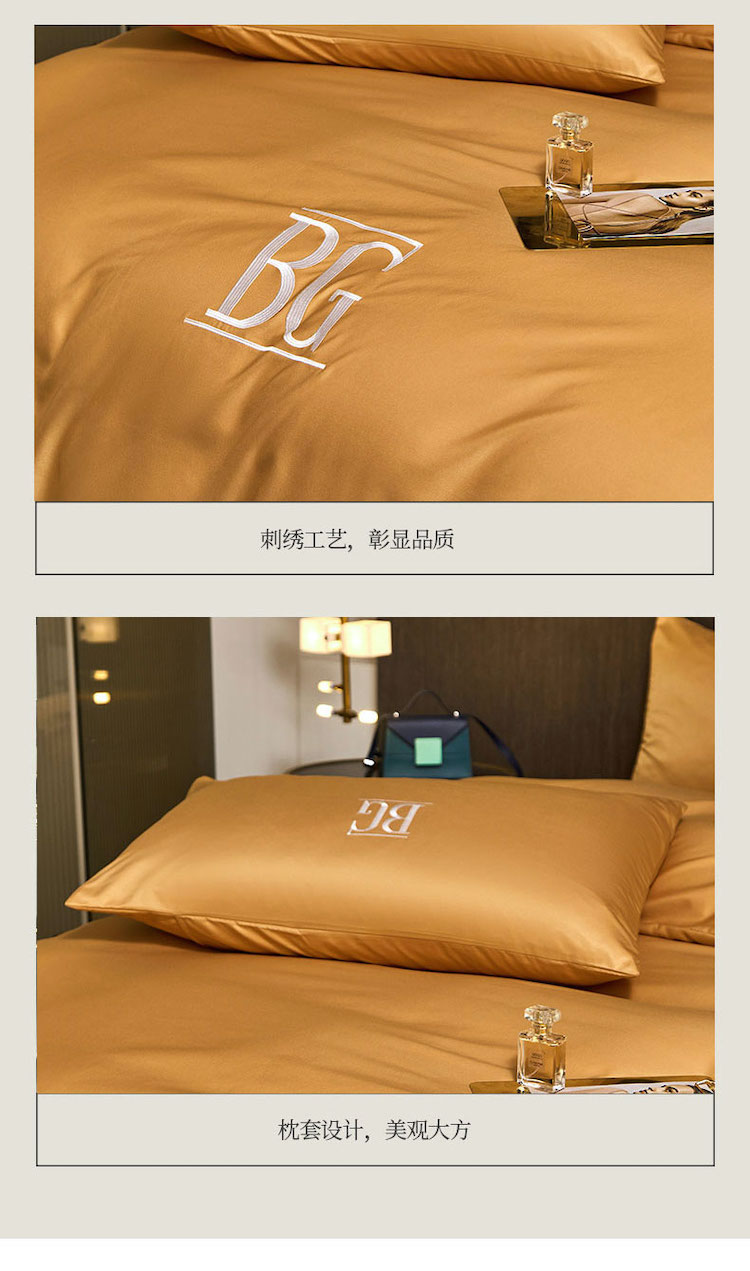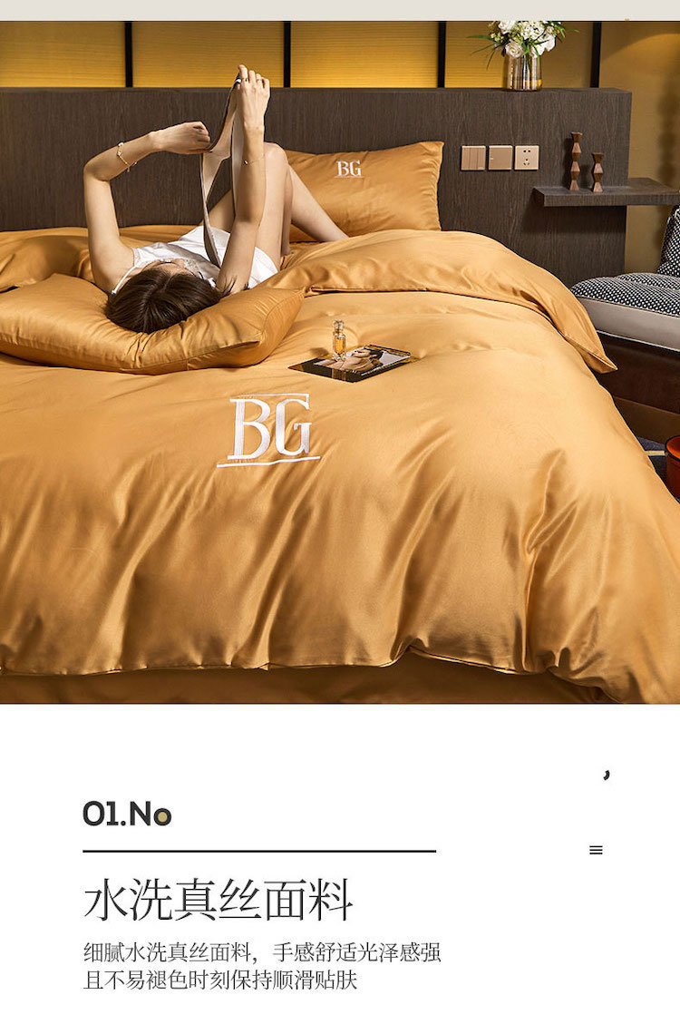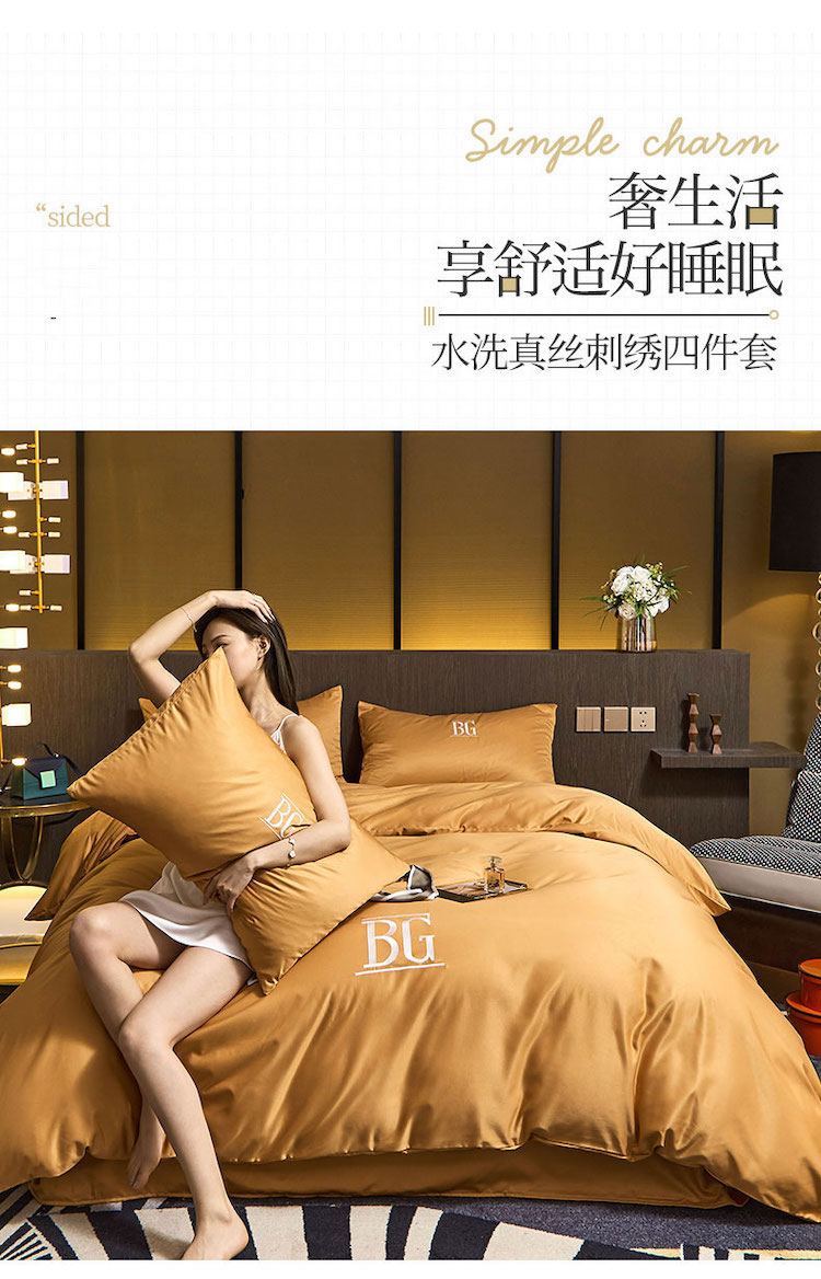 商品名称:凡客 2021春夏新款60支水洗真丝绣花四件套 路易斯-路易黄