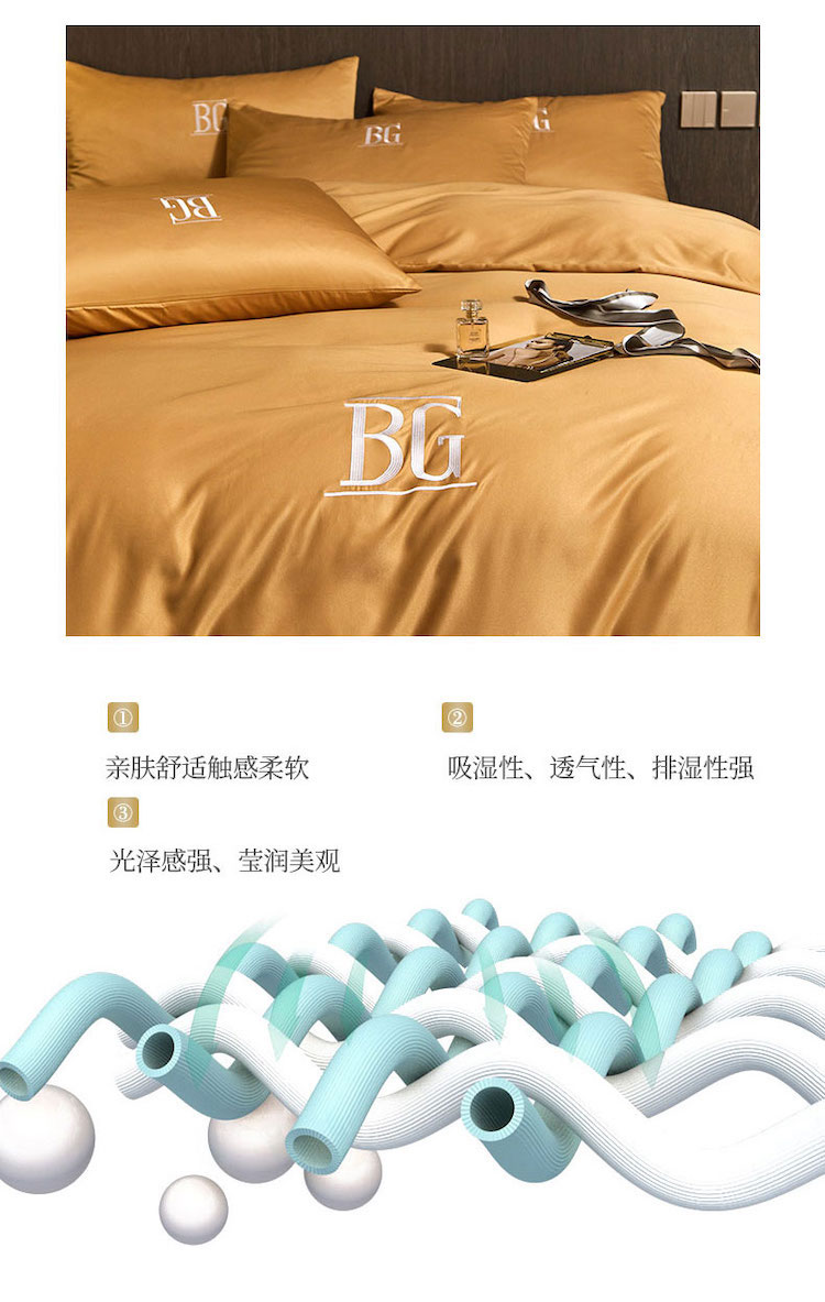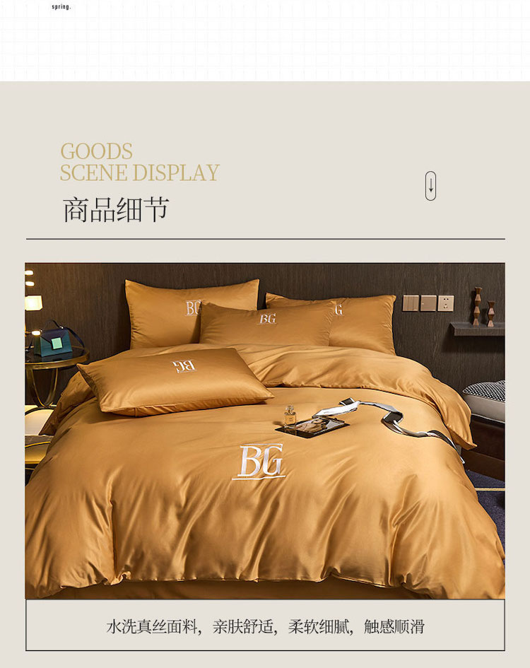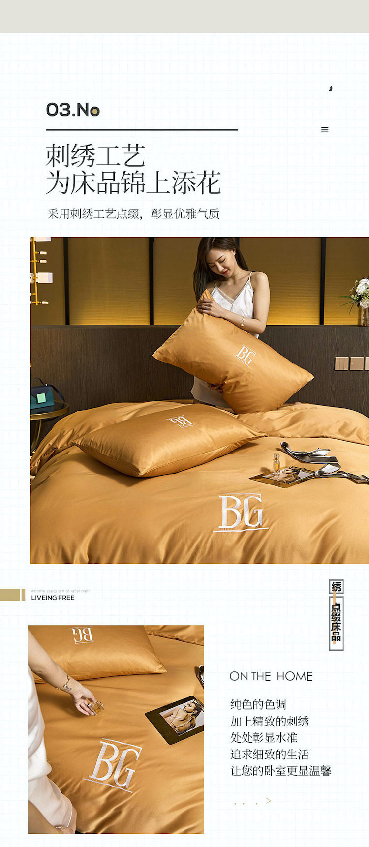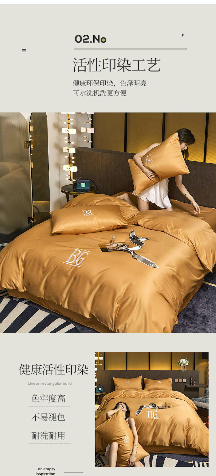 商品名称:凡客 2021春夏新款60支水洗真丝绣花四件套 路易斯-路易黄