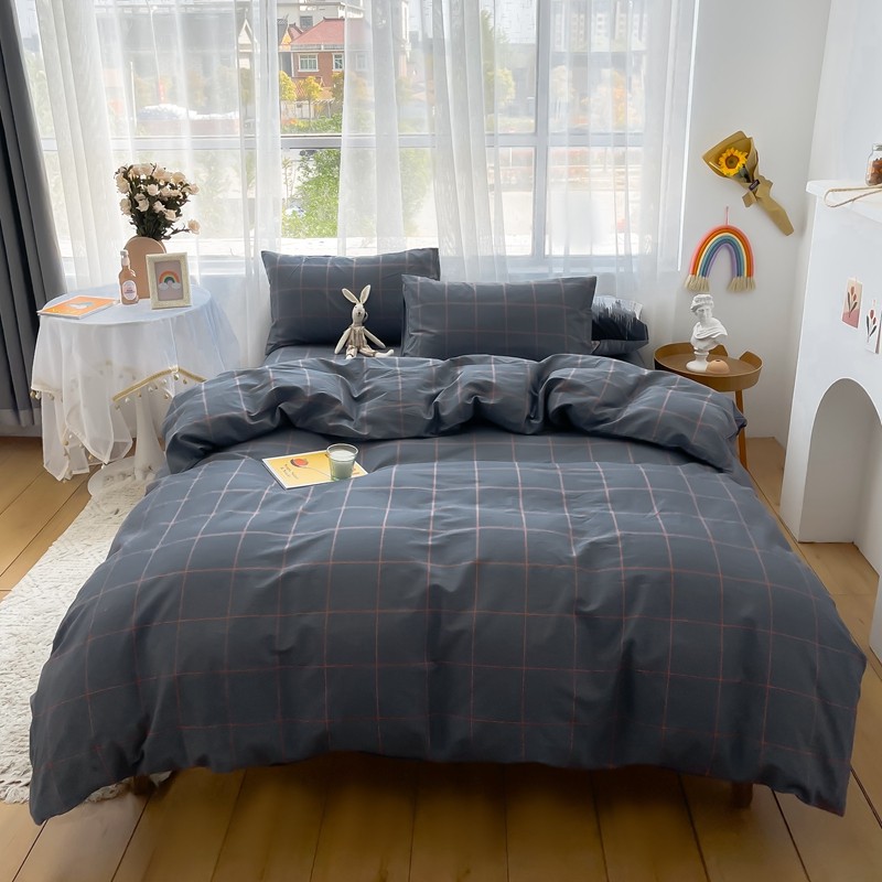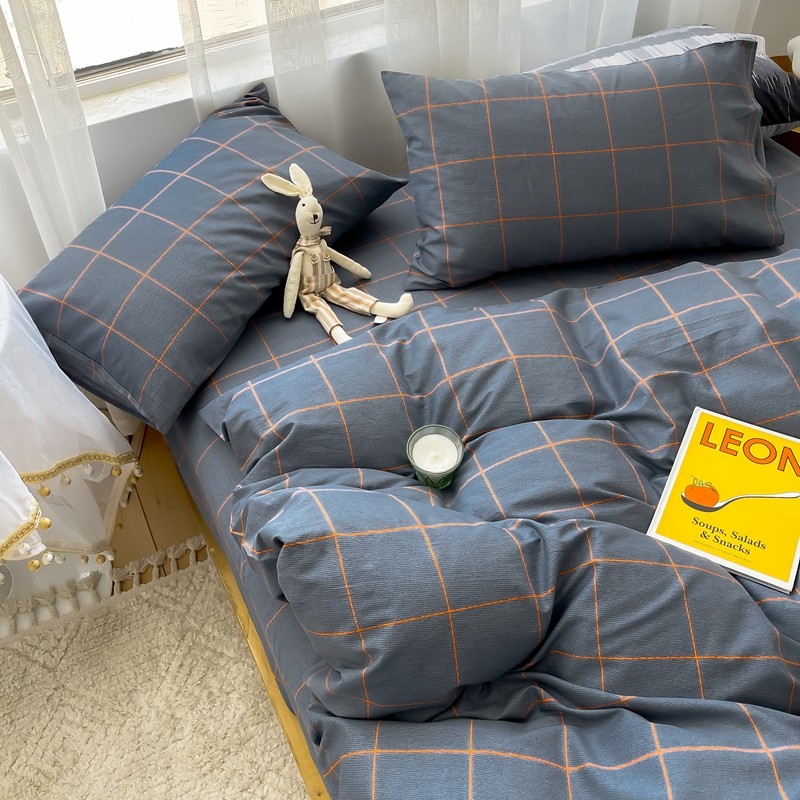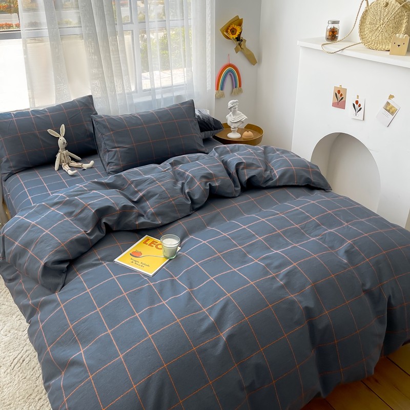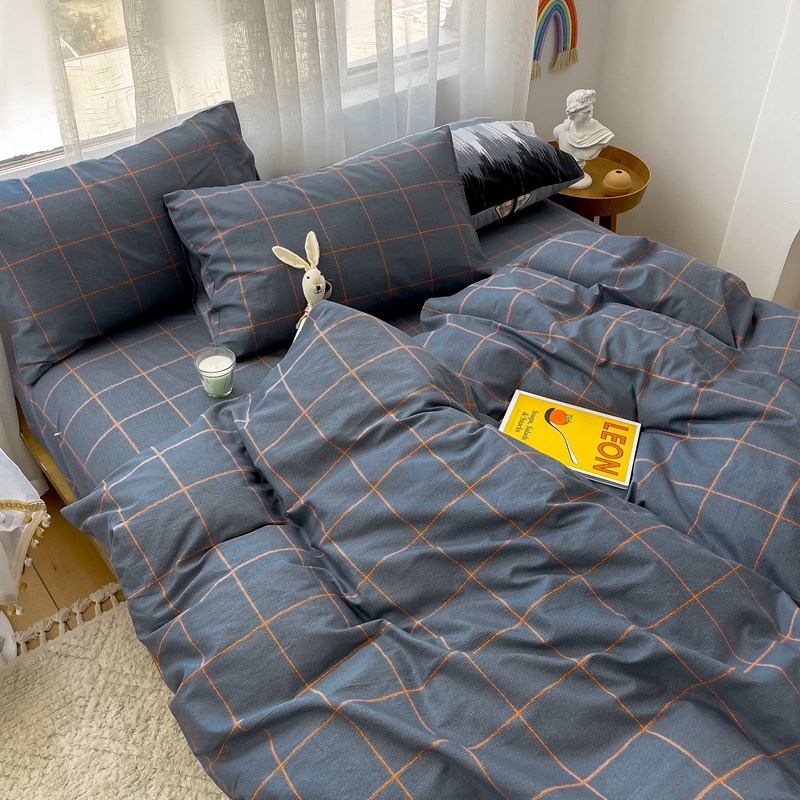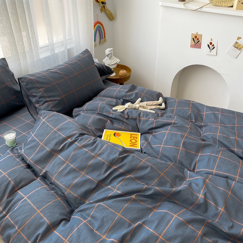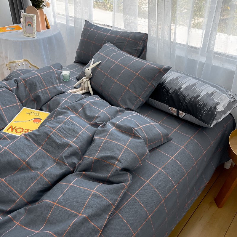 (总)感遇家纺 2022新款全棉印花四件套,格子小花,黑格恐龙,蓝色心情,浅暖
