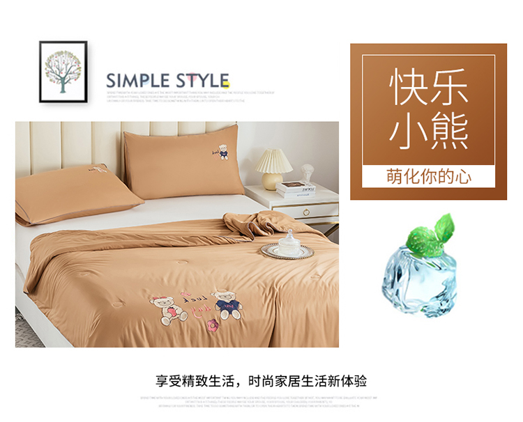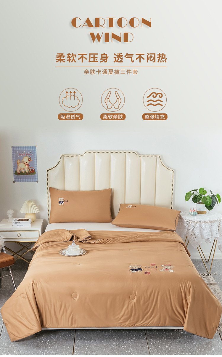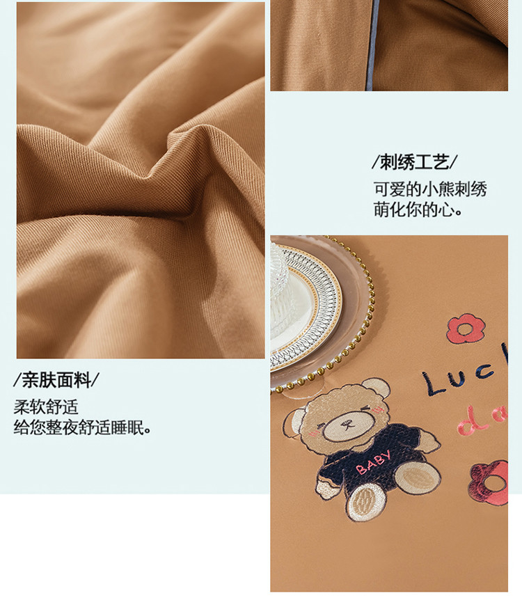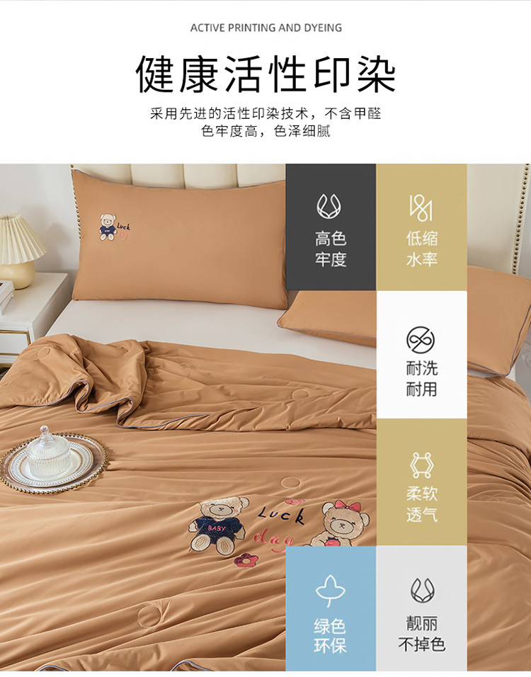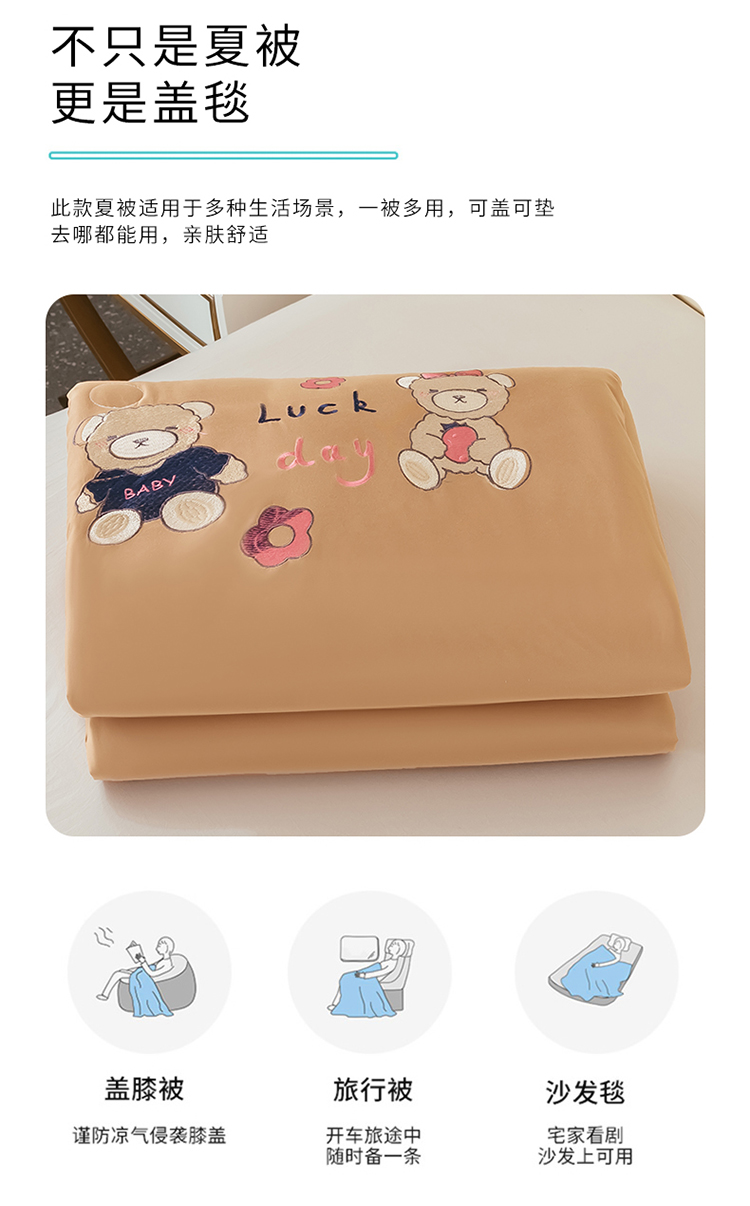 商品名称:芃成家纺 2021新款针织棉绣花夏被 快乐小熊深咖