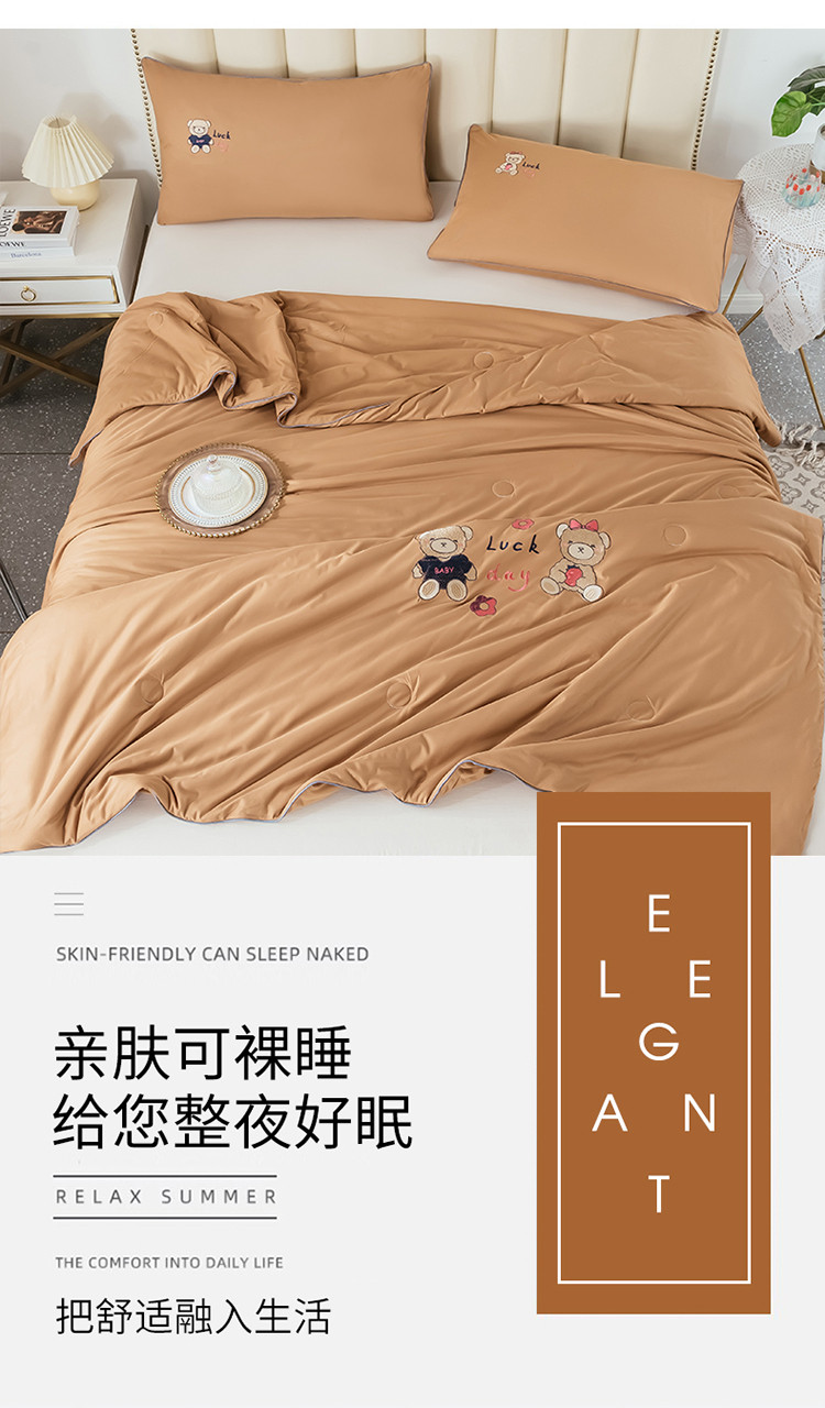 芃成家纺 2021新款针织棉绣花夏被 快乐小熊深咖