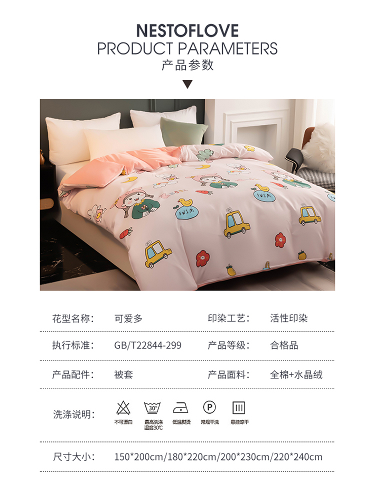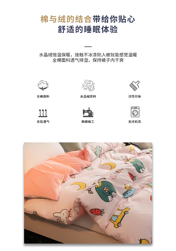 商品名称:芃成家纺 2021新款棉加绒单被套 可爱多