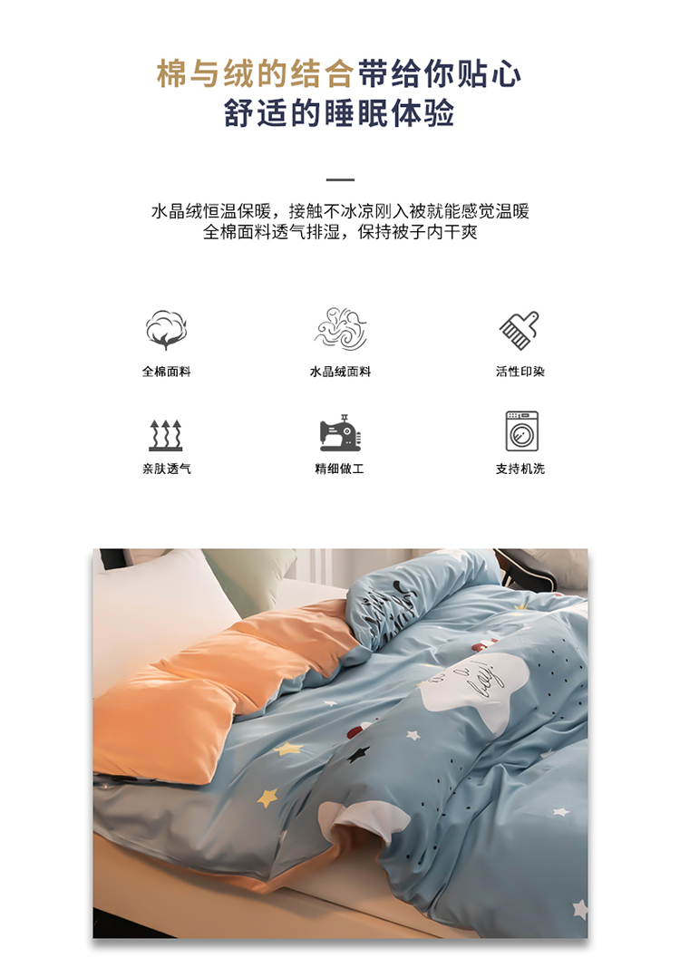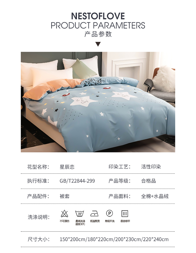 商品名称:芃成家纺 2021新款棉加绒单被套 星辰恋