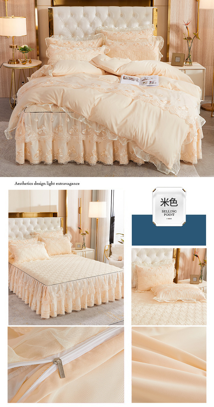 (总)瑞宝 2025新款雕花牛奶绒花边夹棉床盖四件套-莫妮卡,奶昔白,抹茶绿,奶茶咖,少女粉,雾蓝