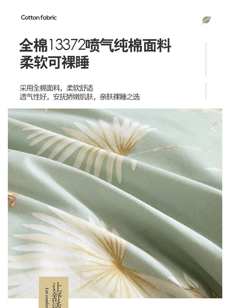 当前位置: 91家纺网 > 商品网购 > 床品套件 > 四件套 > 全棉普通四件套 > 小时代 2022新款全棉印花床盖四件套 盛夏舞曲绿