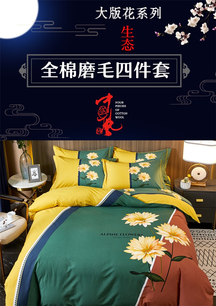 芊寻家居 2024新款全棉大版磨毛四件套 激情岁月
