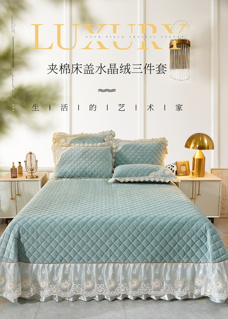 (总)网红馆 2025新款曼妮夹棉水晶绒单品床盖被套枕套