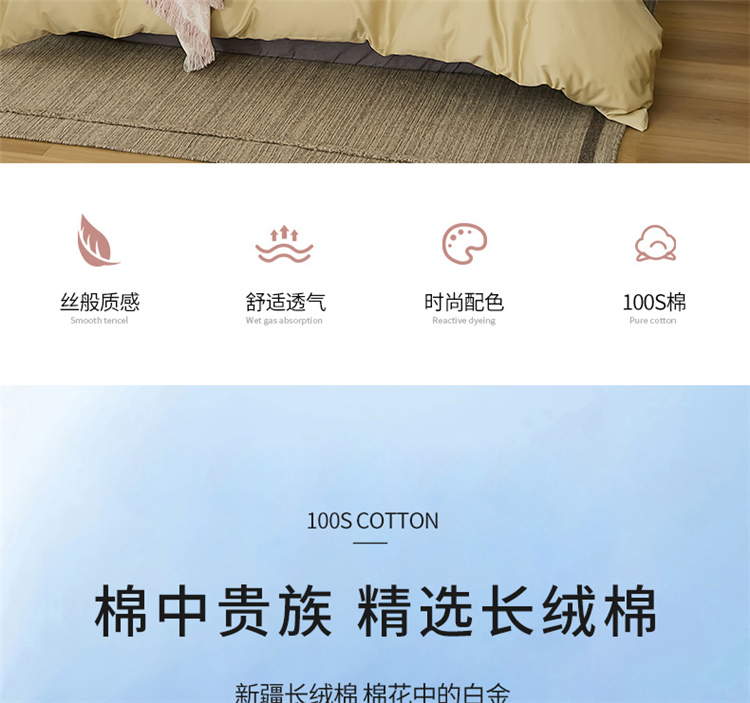 (总)EH家居 2026新款长绒棉窄边四件套,白茶奶黄,冰草紫,初春夏田,焦糖橙,静谧蓝,泡沫粉,青葱色,山核桃棕
