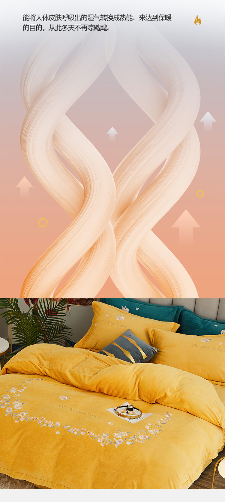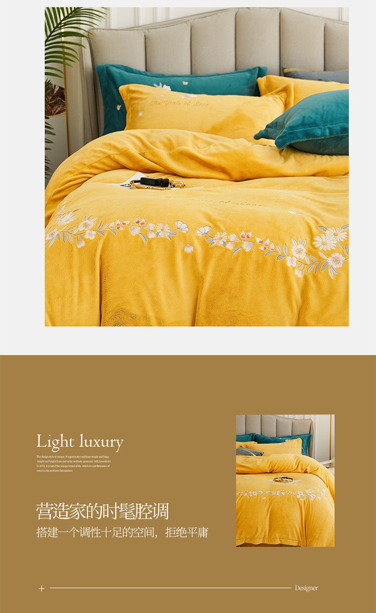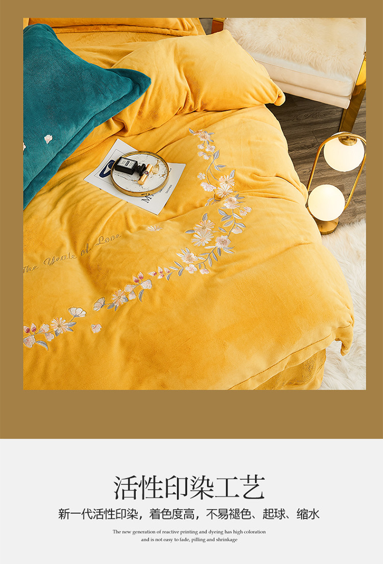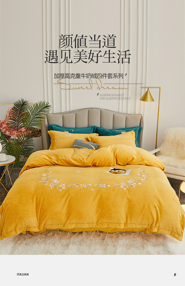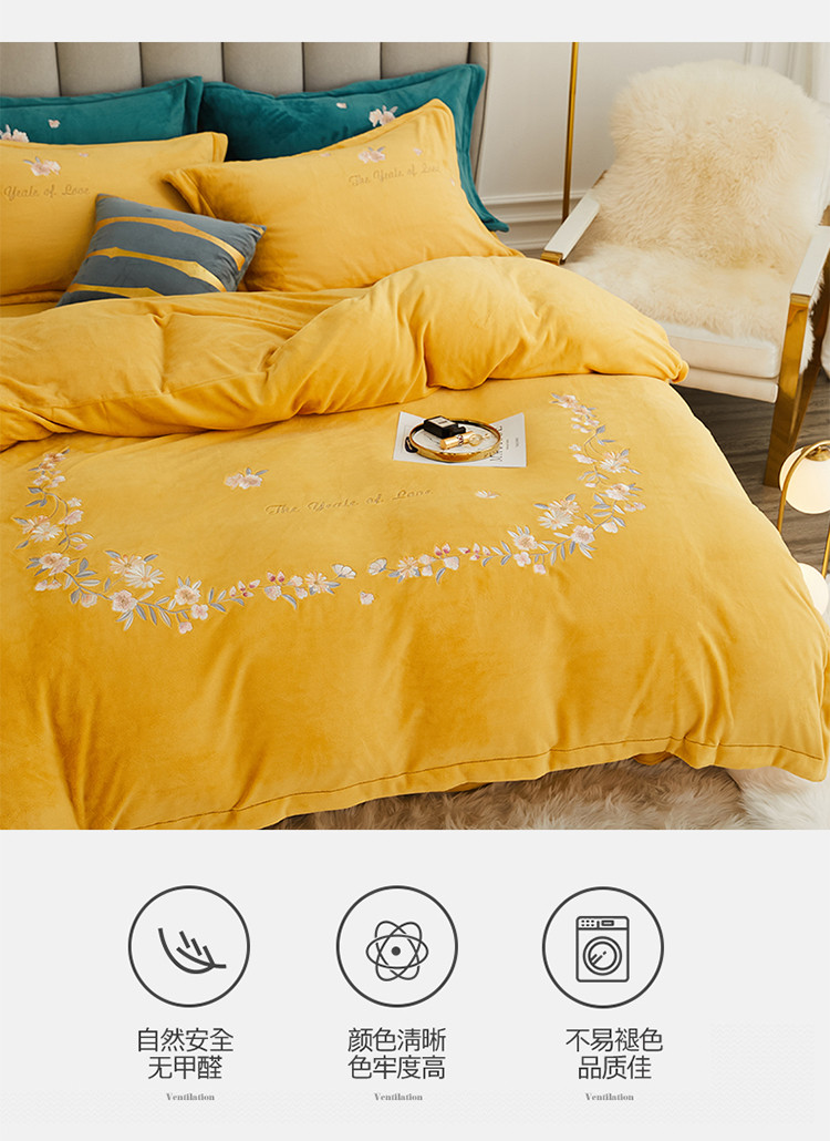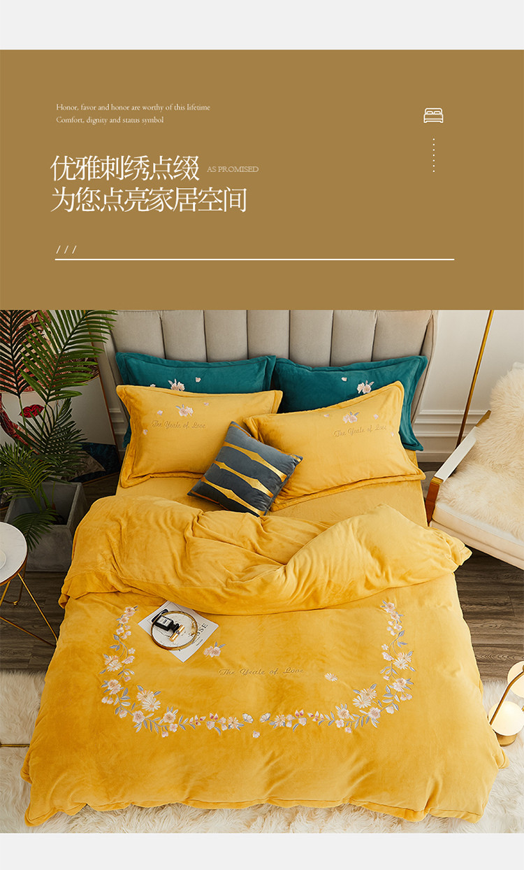 商品名称:锦罗绣 2021新款高端牛奶绒刺绣款四件套 花好月圆-黄