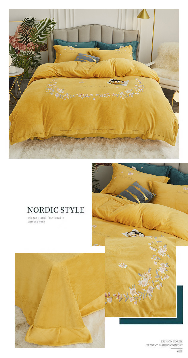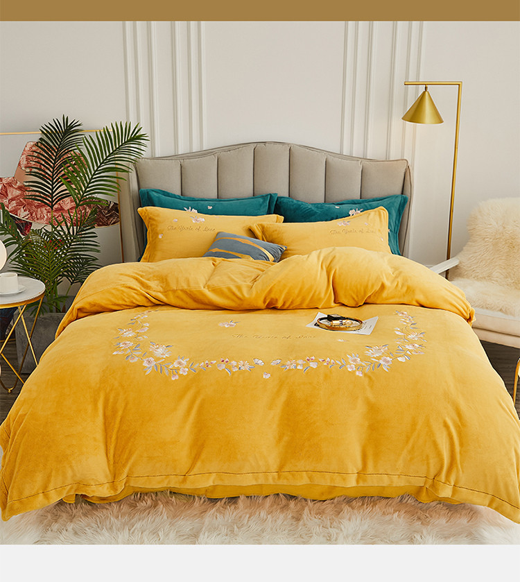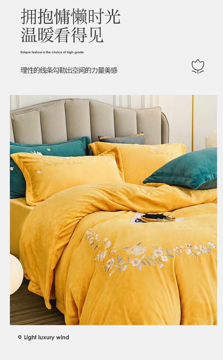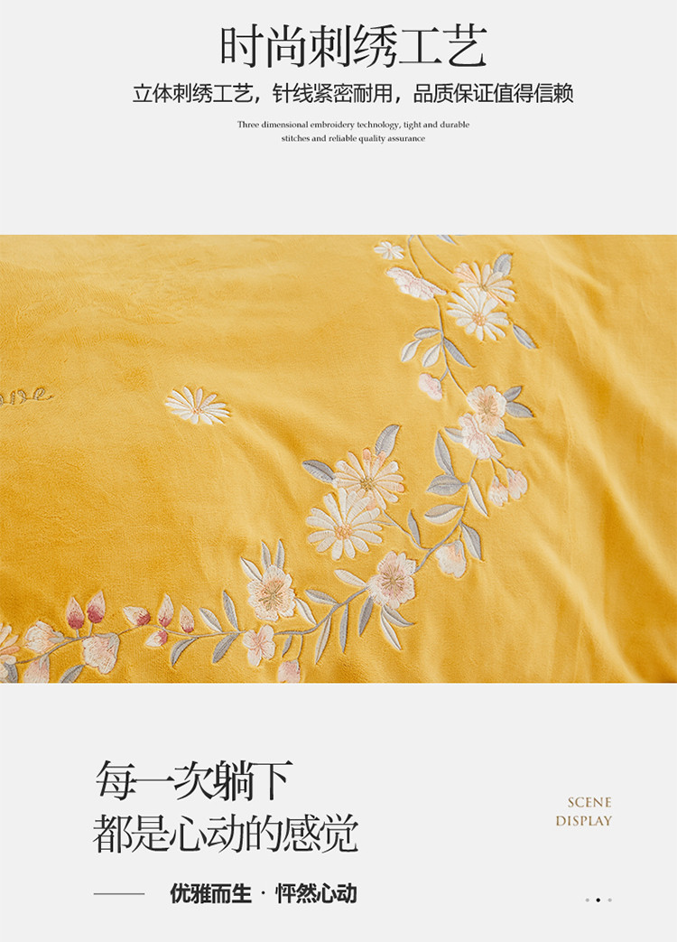 锦罗绣 2021新款高端牛奶绒刺绣款四件套 花好月圆-黄