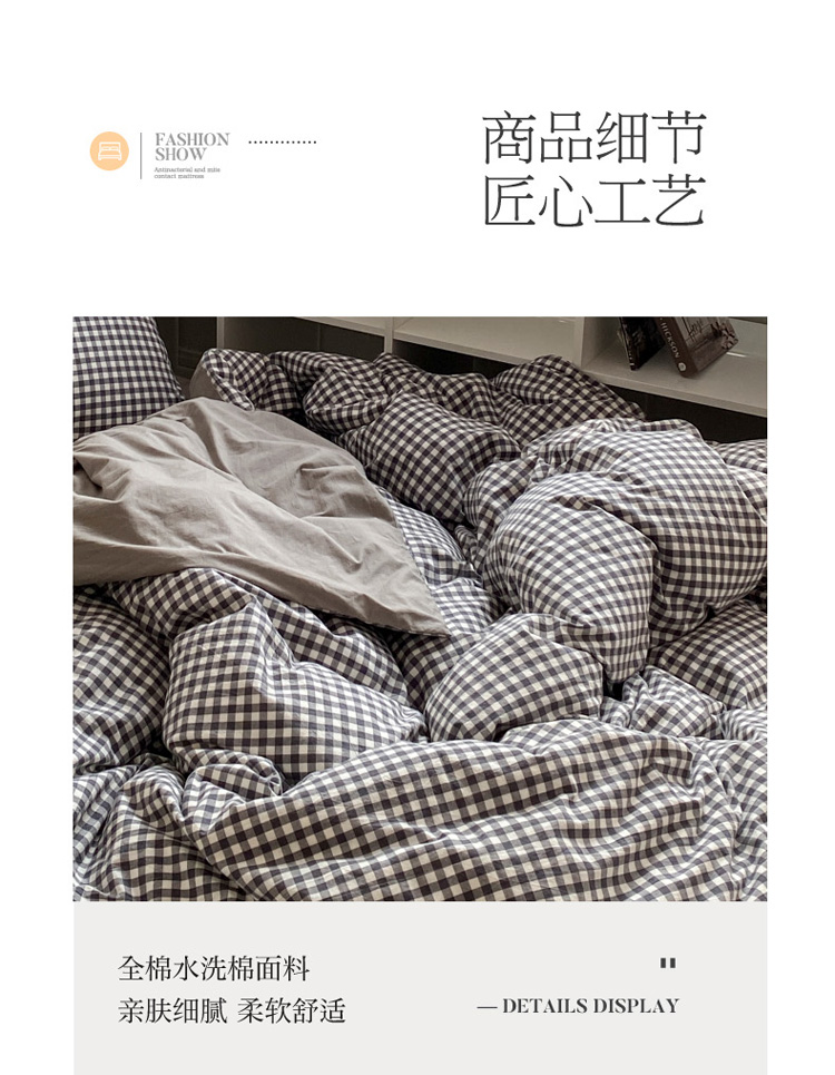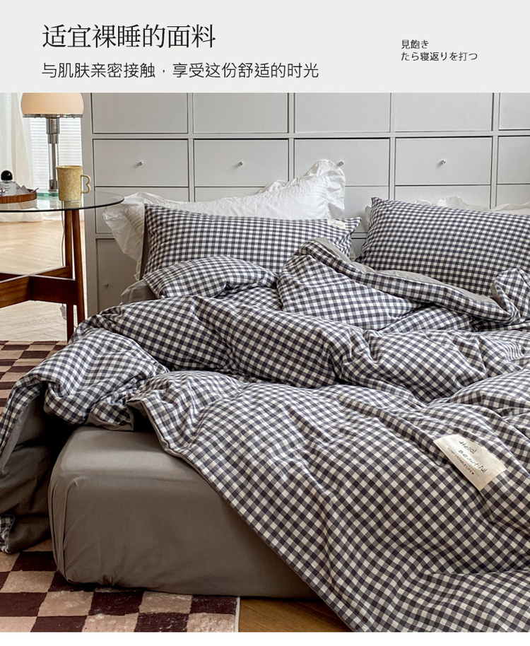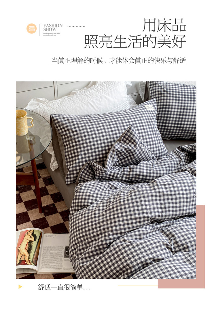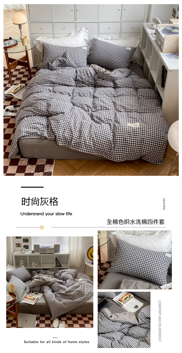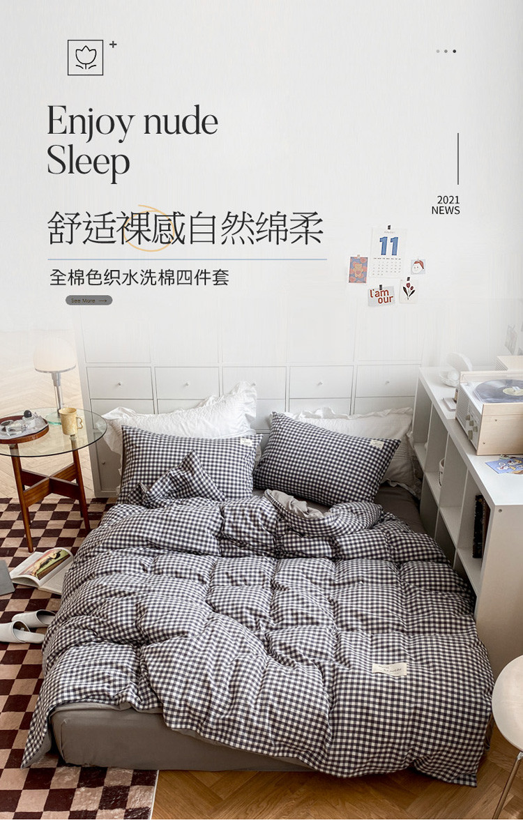 当前位置: 91家纺网 > 商品网购 > 床品套件 > 四件套 > 水洗棉四件套 > 寐居 2021水洗色织全棉四件套 时尚灰格
