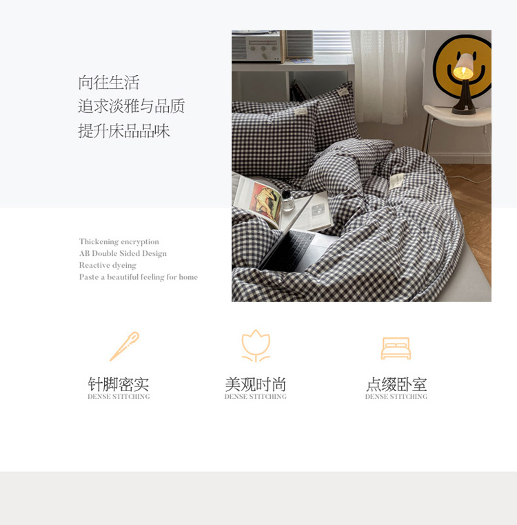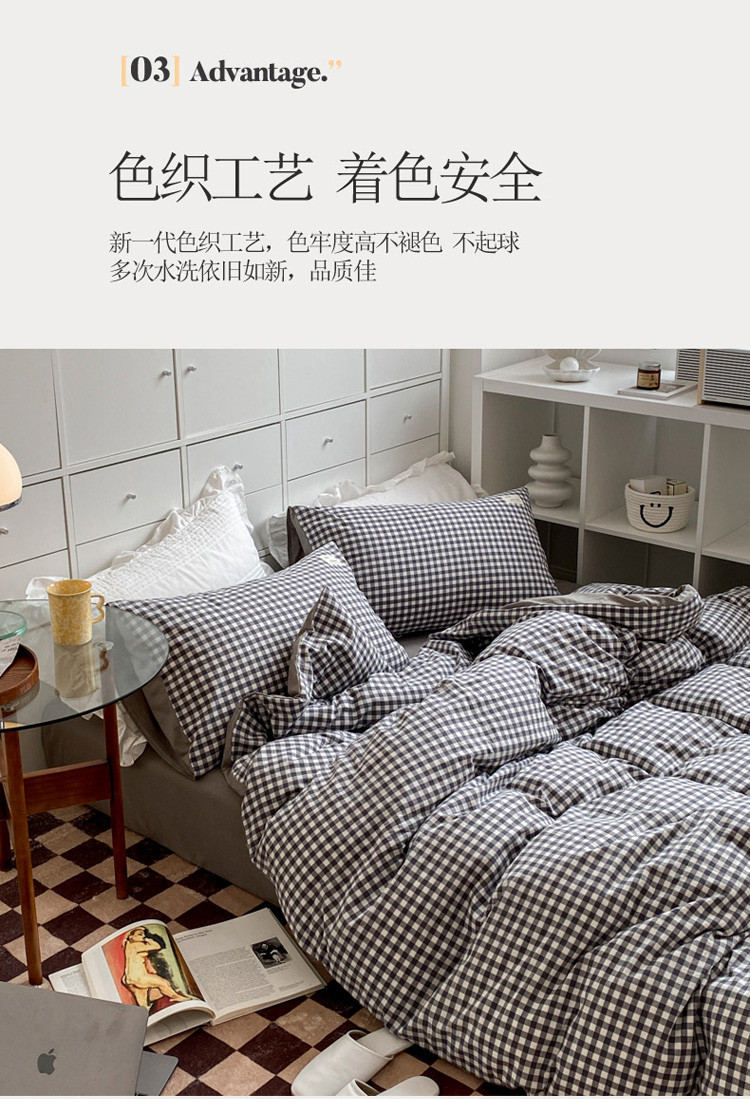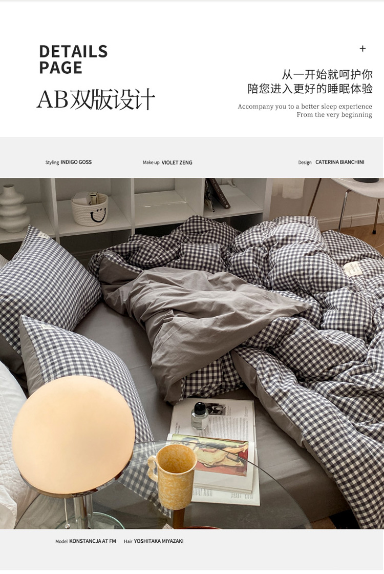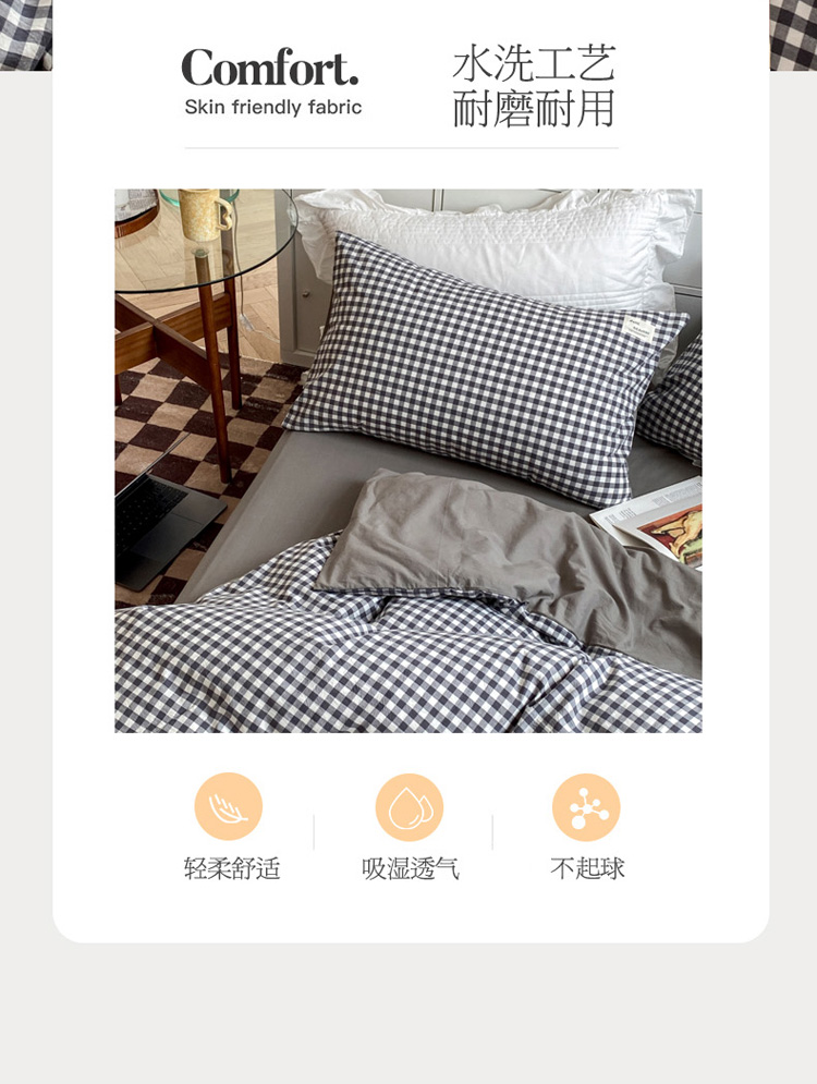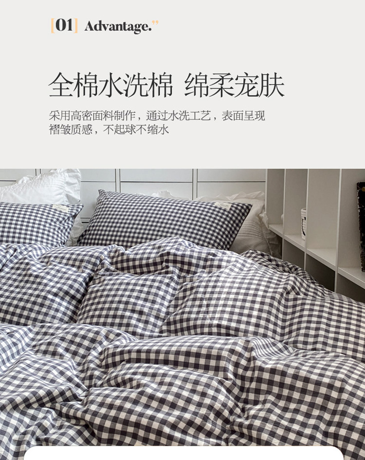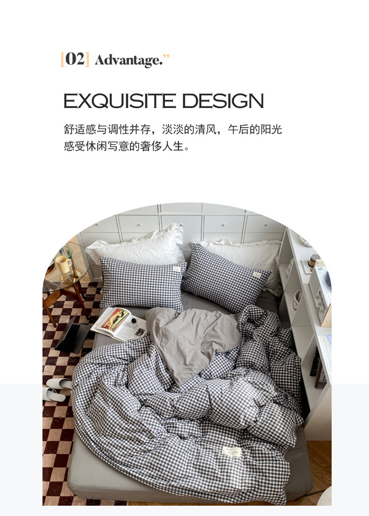 当前位置: 91家纺网 > 商品网购 > 床品套件 > 四件套 > 水洗棉四件套 > 寐居 2021水洗色织全棉四件套 时尚灰格