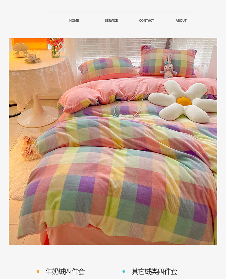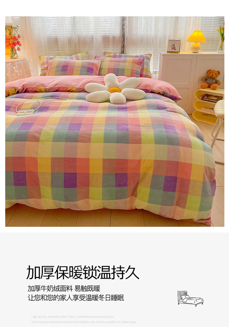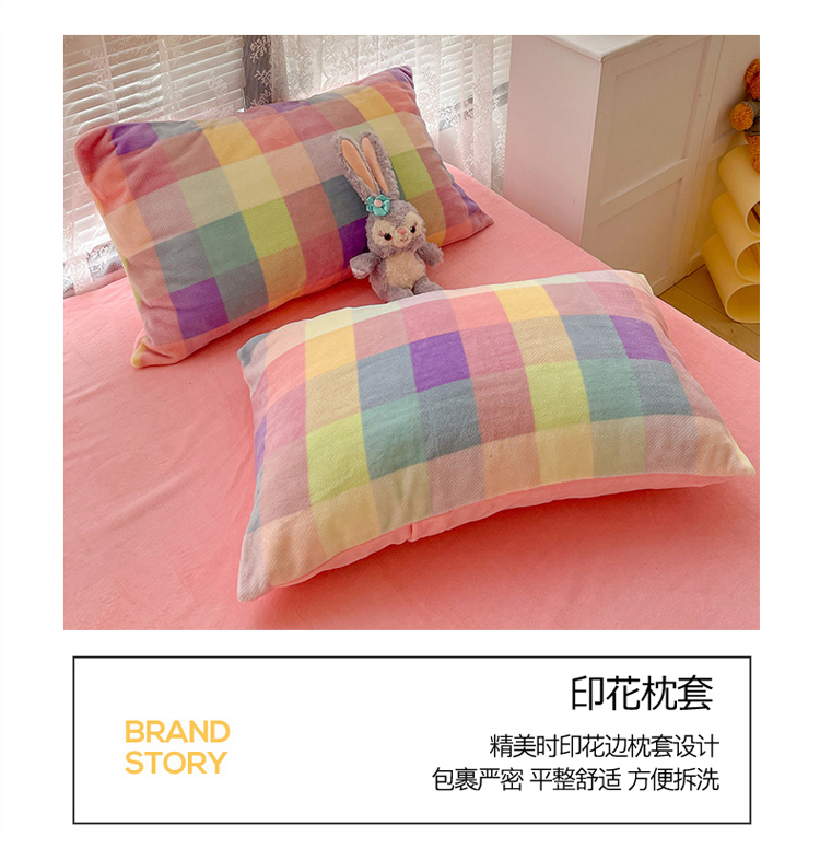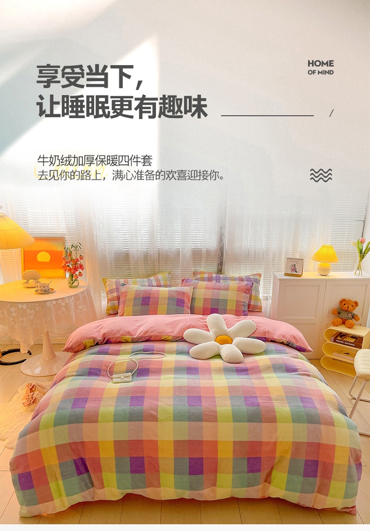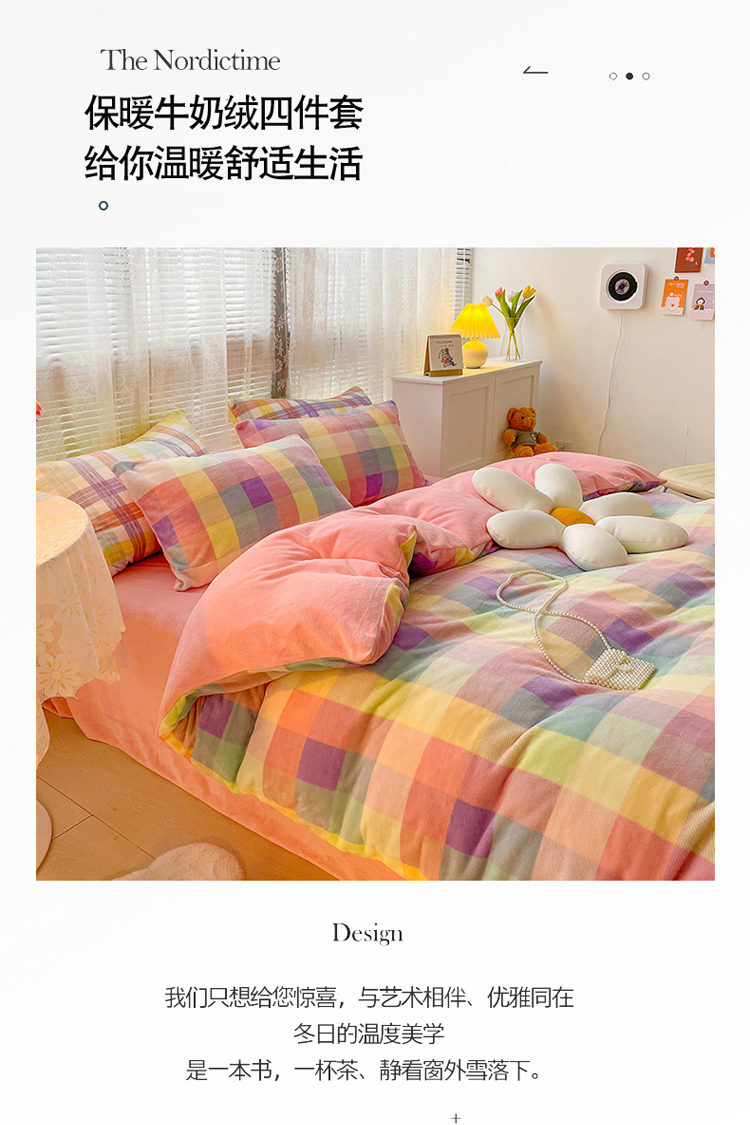 商品名称:慕尚2022新款撞色果冻格子复古格子牛奶绒四件套 果冻格子-粉