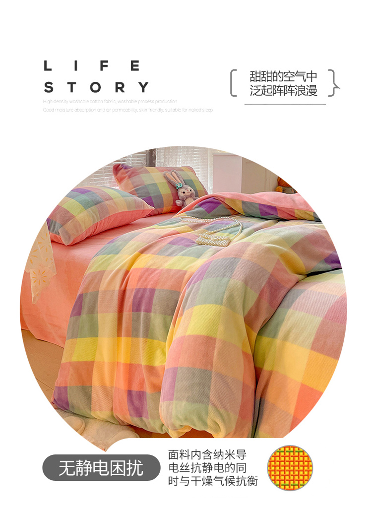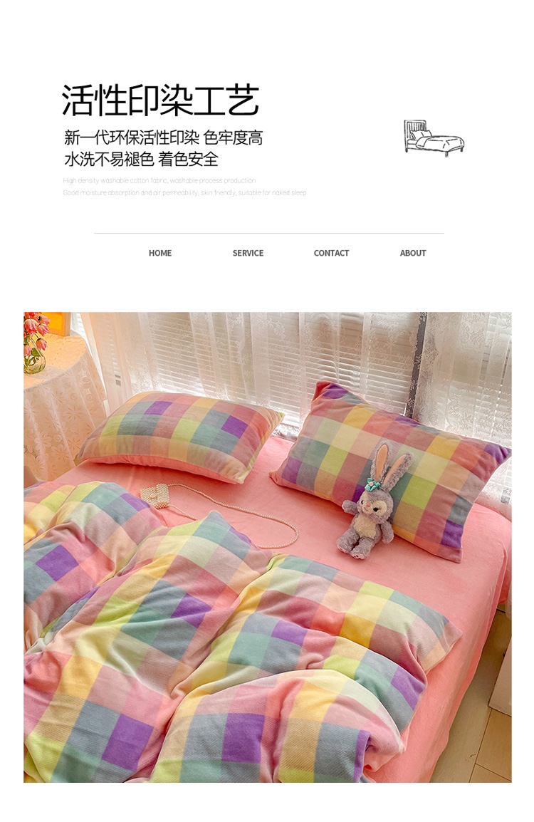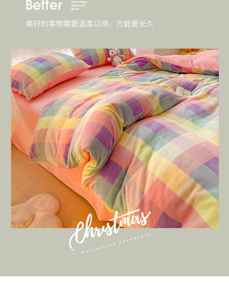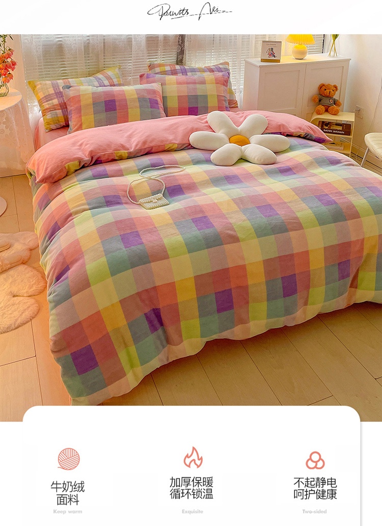 商品名称:慕尚2022新款撞色果冻格子复古格子牛奶绒四件套 果冻格子-粉