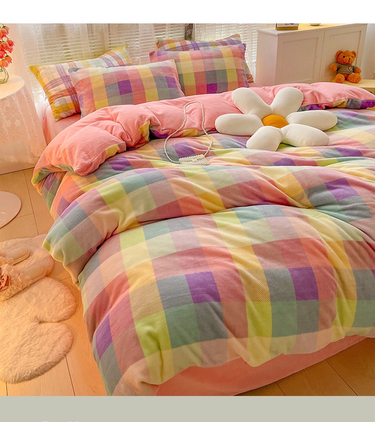 慕尚2022新款撞色果冻格子复古格子牛奶绒四件套 果冻格子-粉