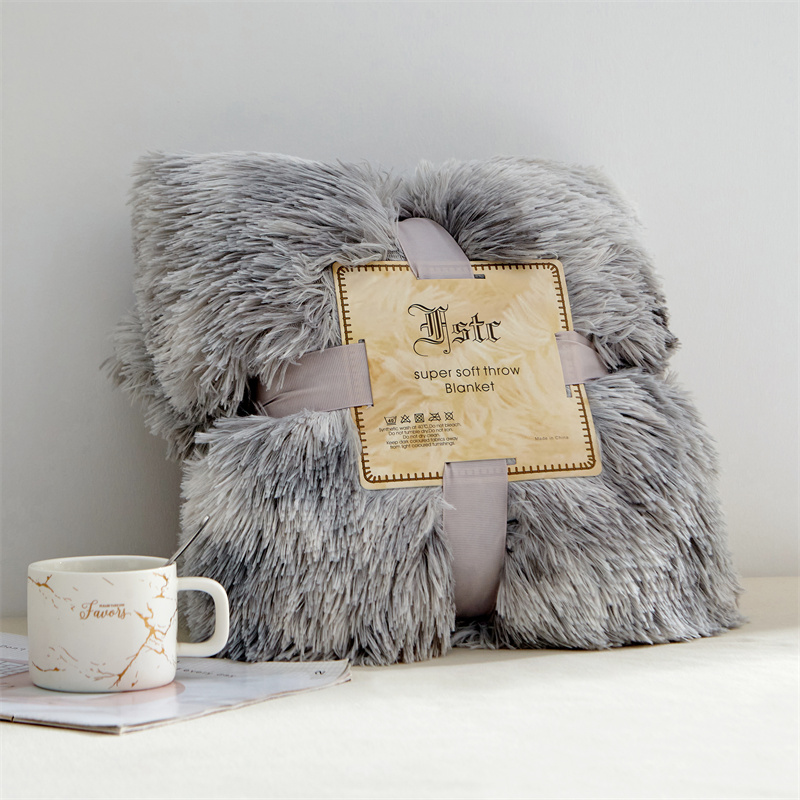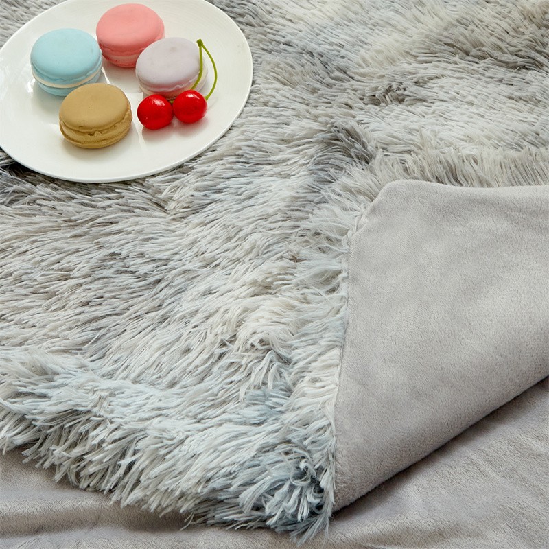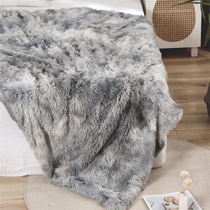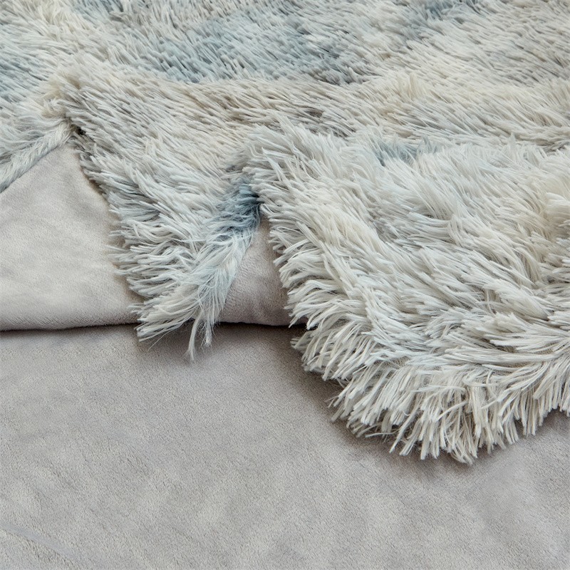 品尚嘉 水貂绒毛毯长毛绒法莱绒双层跨境外贸毯子 扎染-浅灰