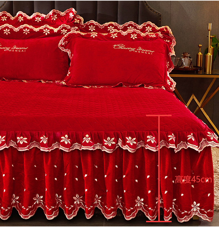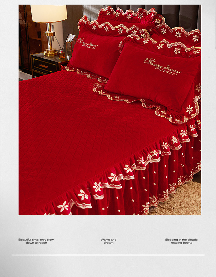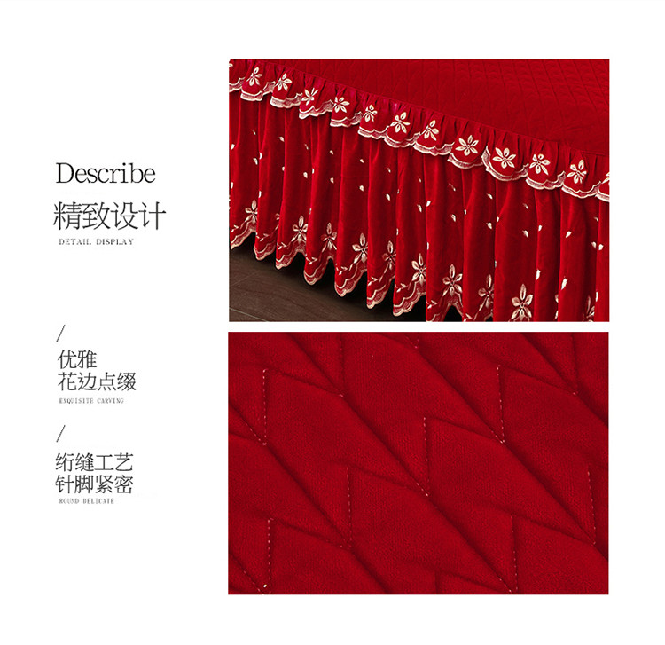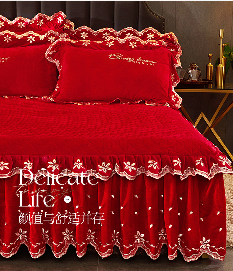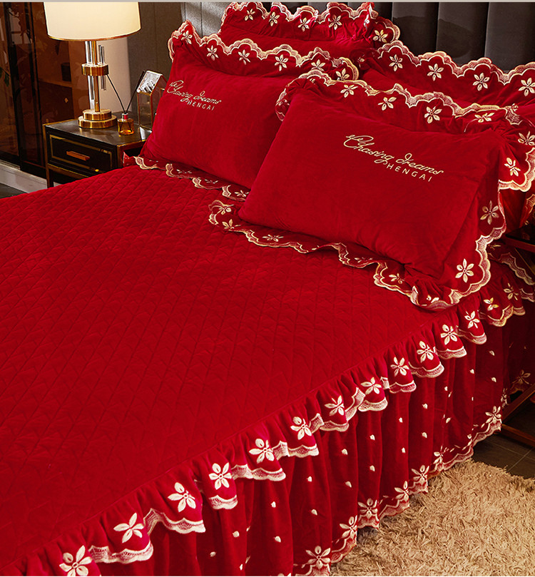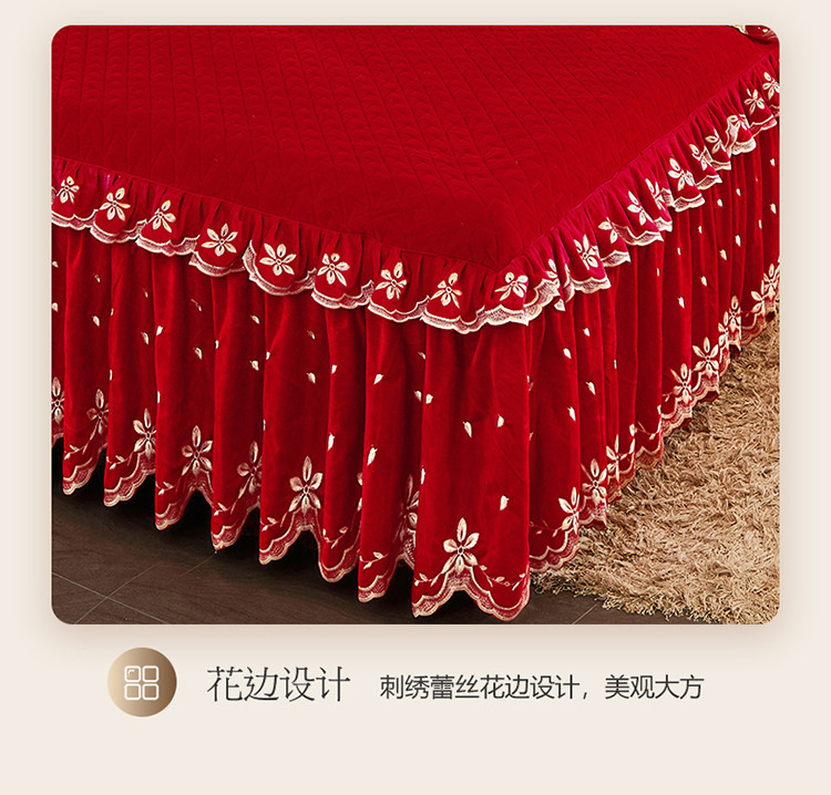 (总)恒爱 2022秋冬水晶绒翩翩花舞夹棉床裙四件套,大红色,豆沙红,橄榄绿,公主粉,桔色,咖啡色,孔雀绿,拉菲红,罗兰紫,玫红色,美人玉,米白色,米驼色,抹茶绿,浅灰色,紫色