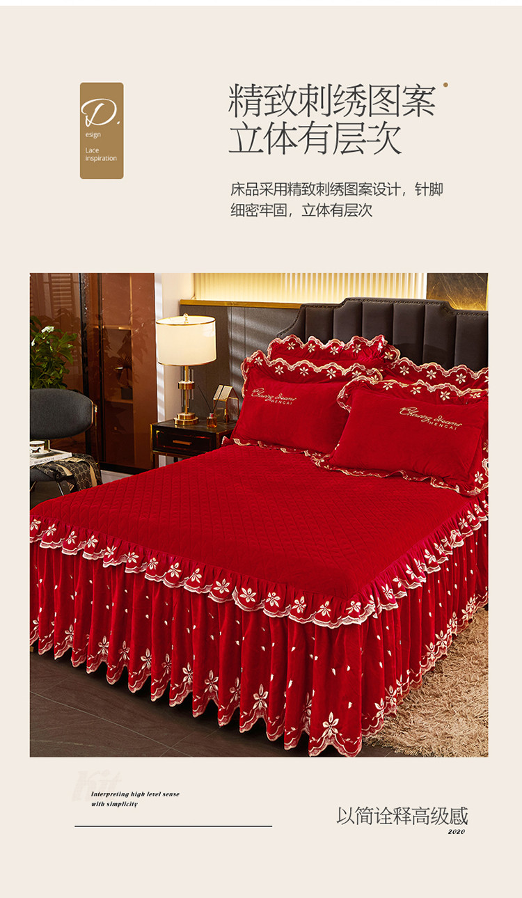商品名称:恒爱2021新款轻奢系列刺绣款单床裙 喜庆红