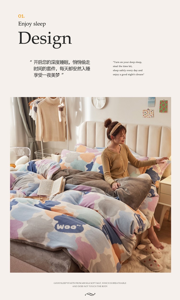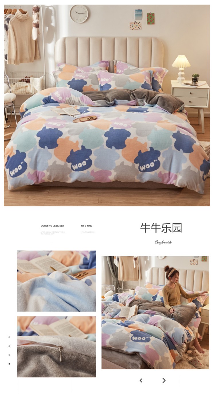 当前位置: 91家纺网 > 商品网购 > 床品套件 > 四件套 > 牛奶绒四件套 > 寐居家纺 2021新款印花牛奶绒四件套浅色调 牛牛乐园