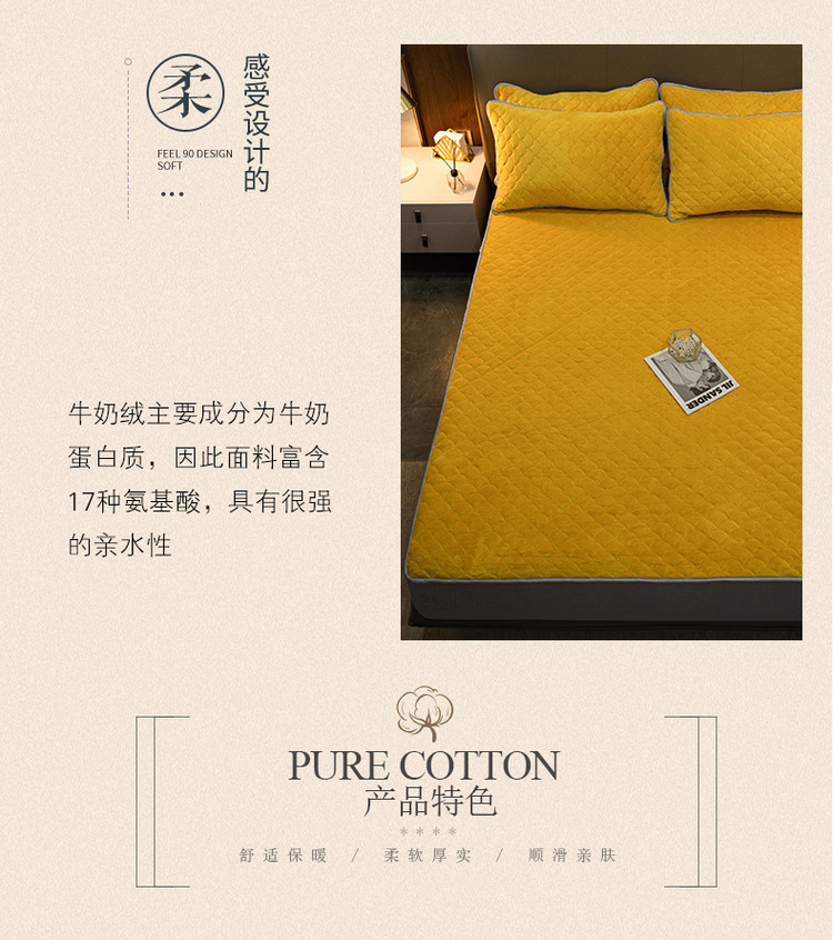 商品名称:棉生活家纺 2021新款秋冬多功能牛奶绒床笠 姜黄