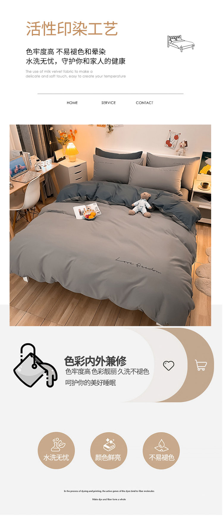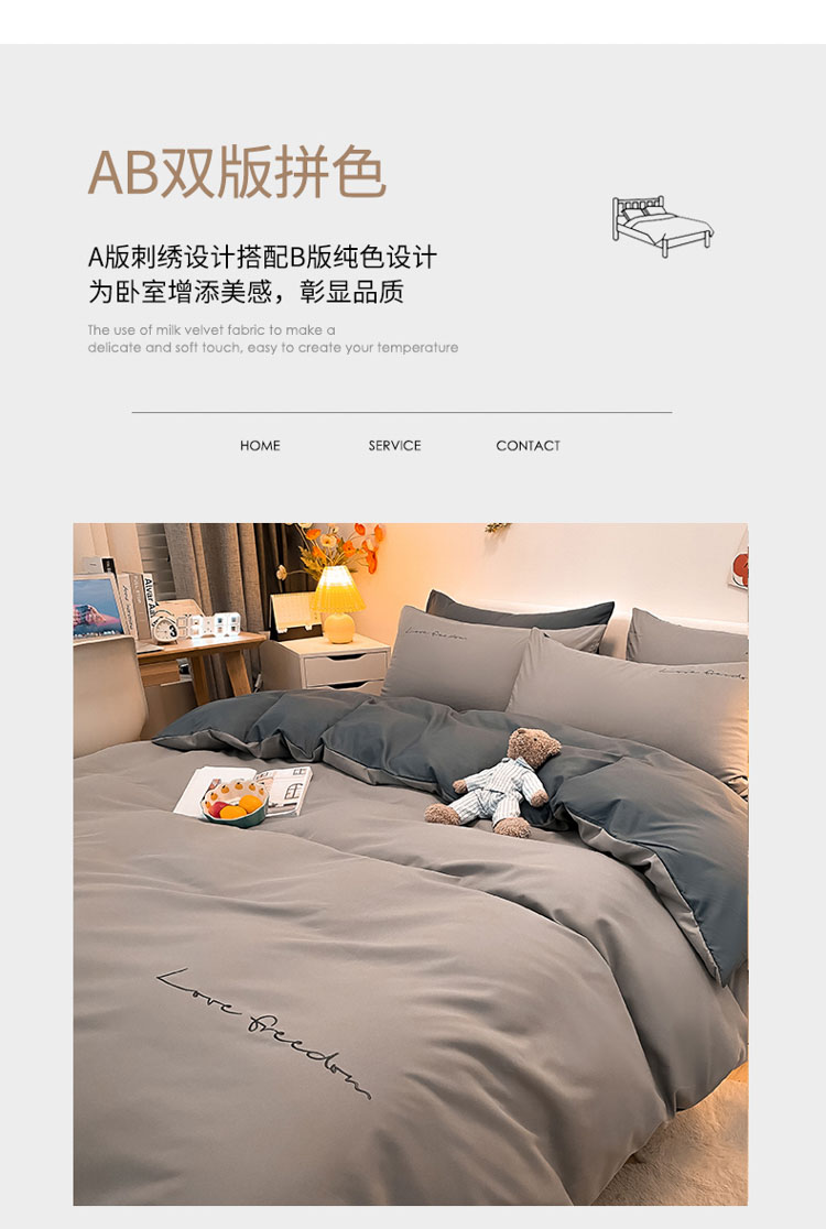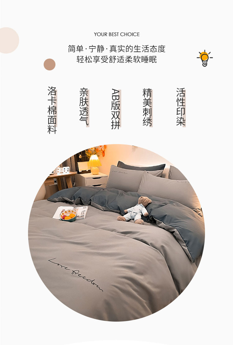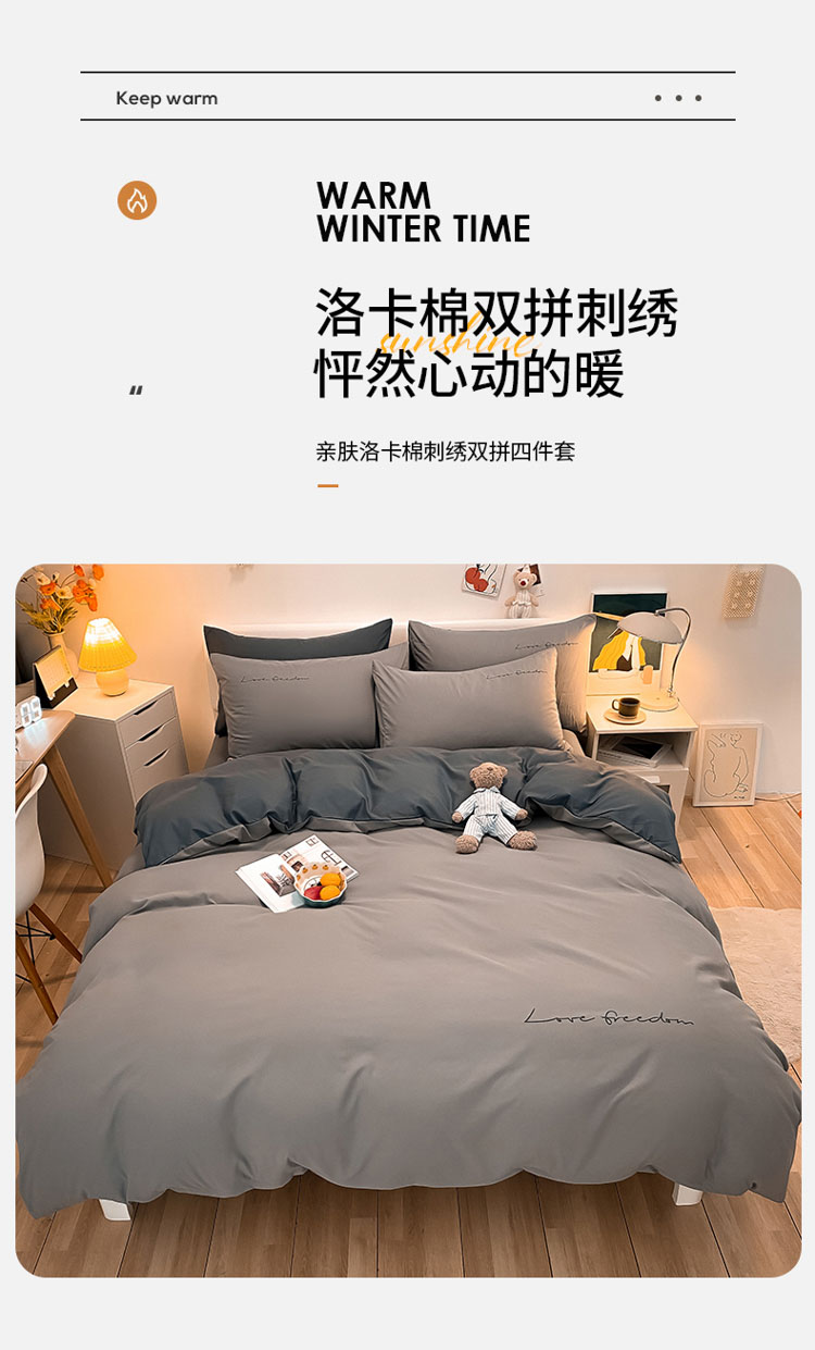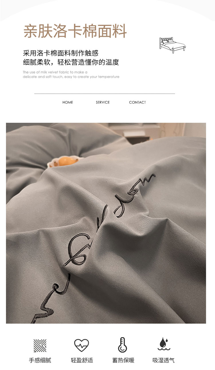 当前位置: 91家纺网 > 商品网购 > 床品套件 > 四件套 > 普通磨毛四件套 > 欣晴 202新款亲肤洛卡棉磨毛简约刺绣四件套 简约-浅灰深灰