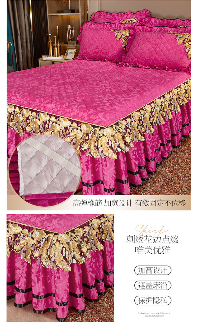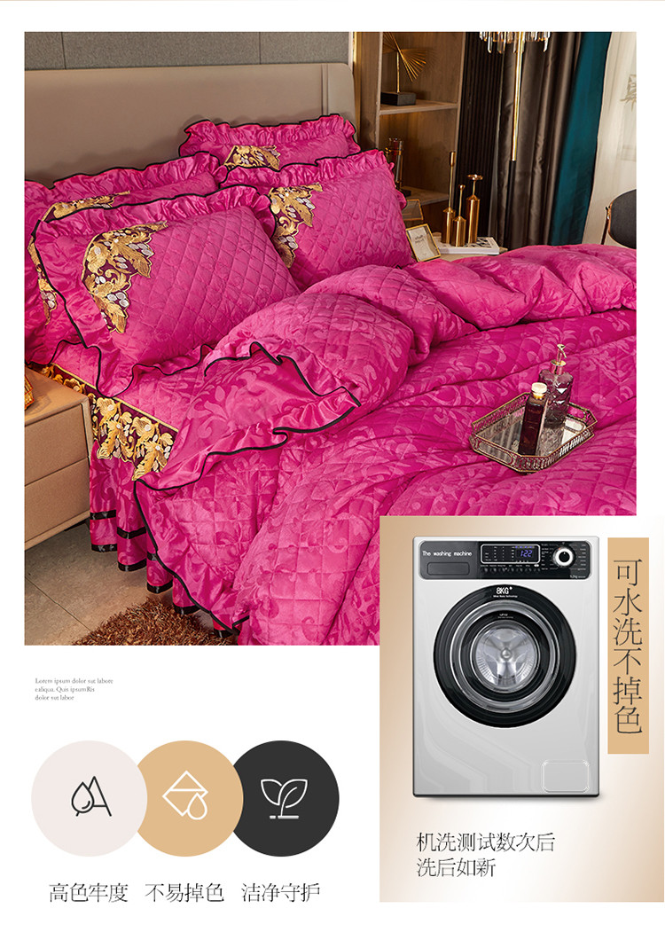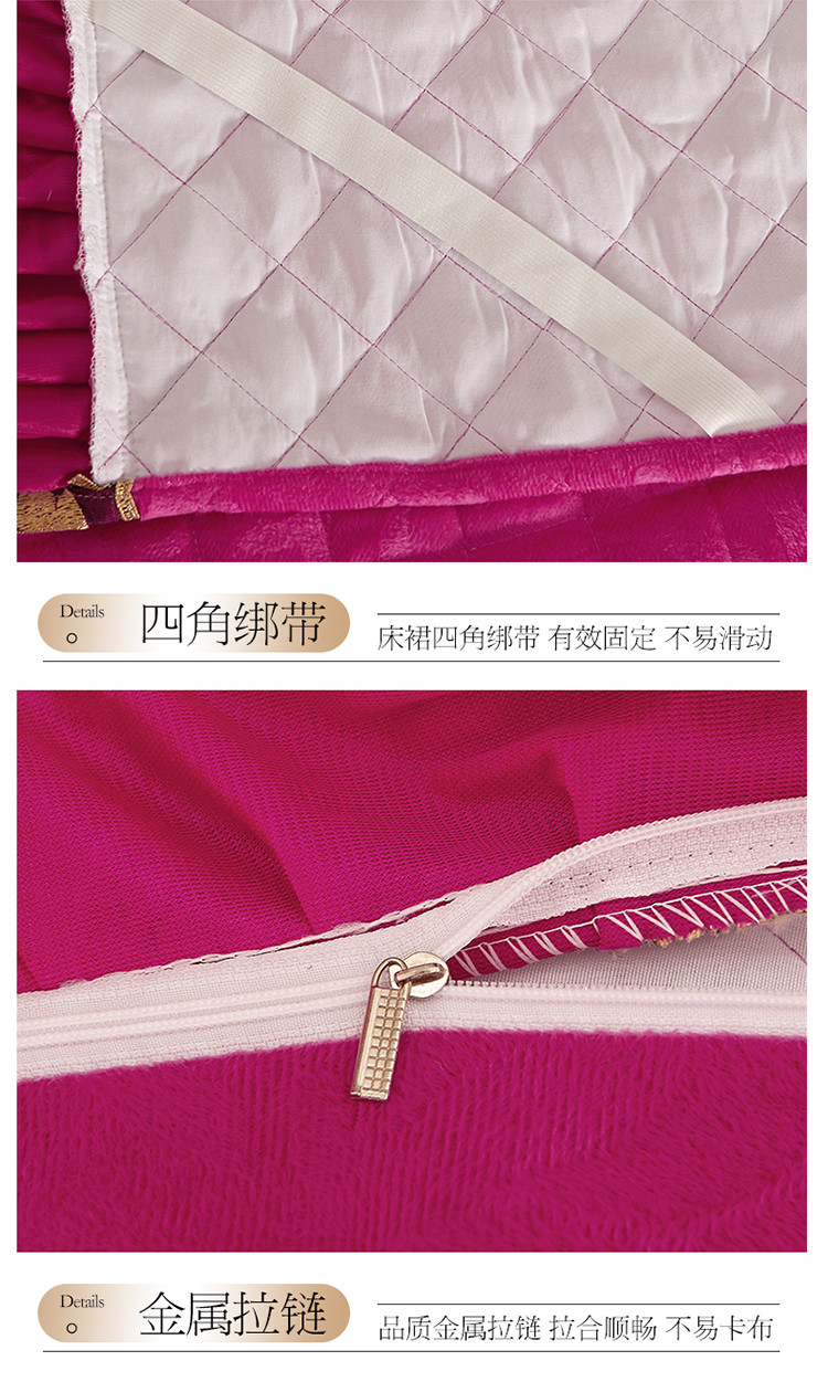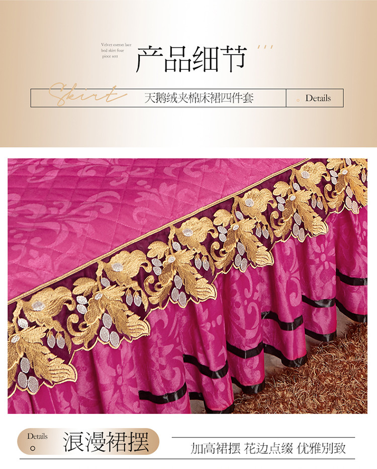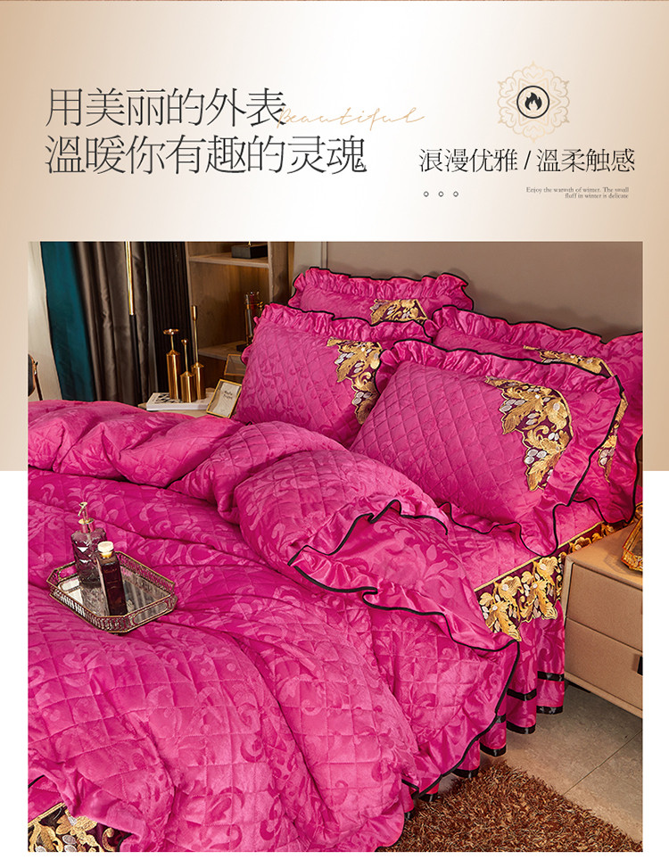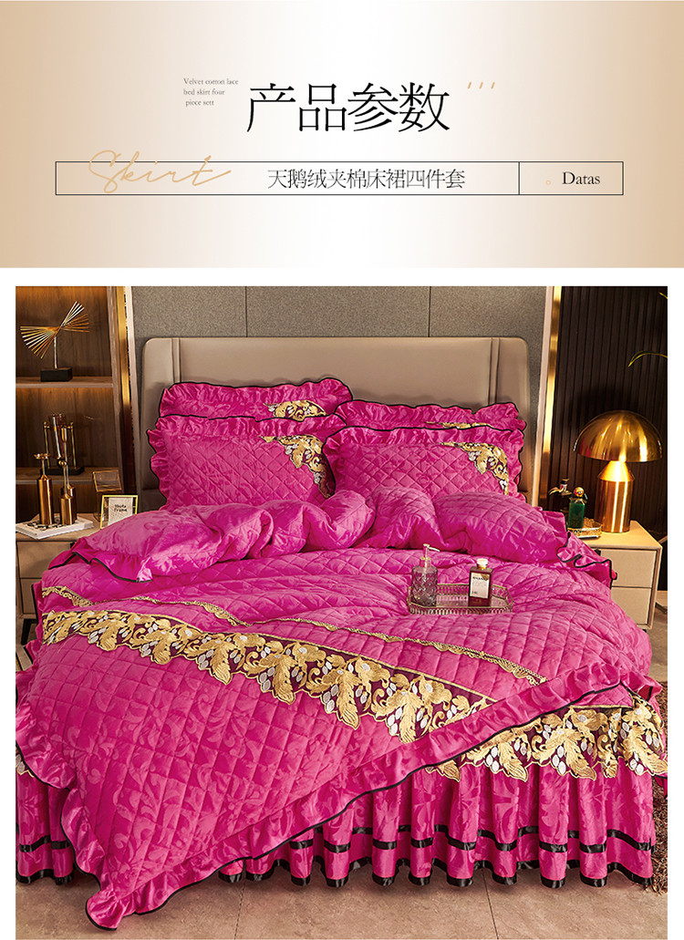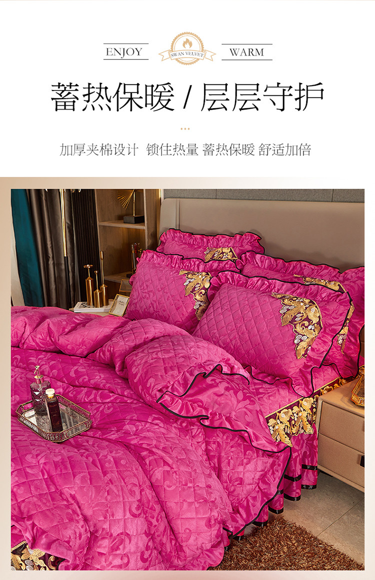 商品名称:网红馆2025新款天鹅绒夹棉床裙四件套 浅忆拾光-玫红