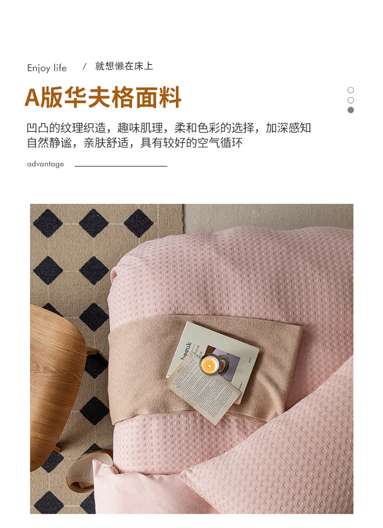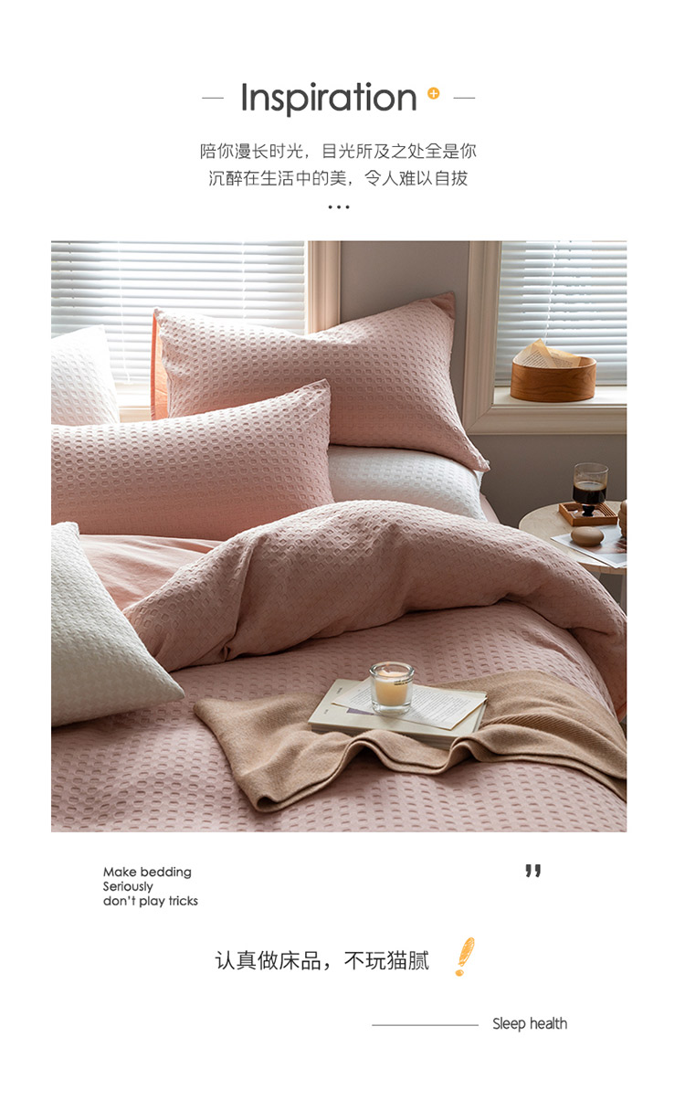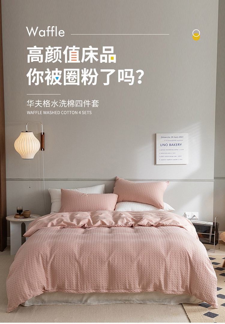 当前位置: 91家纺网 > 商品网购 > 床品套件 > 四件套 > 水洗棉四件套 > 梦享生活 2021新款华夫格水洗棉四件套 淡绯