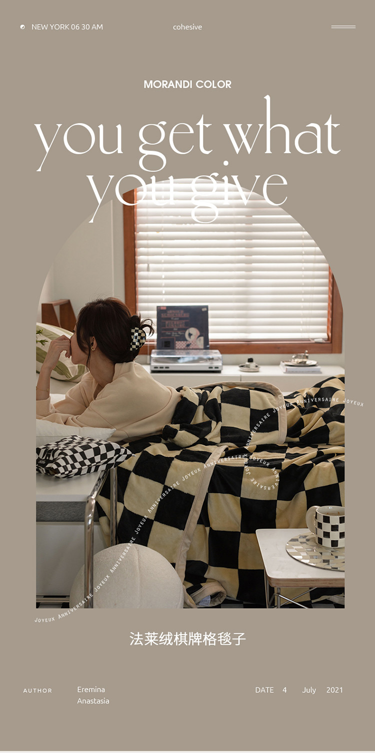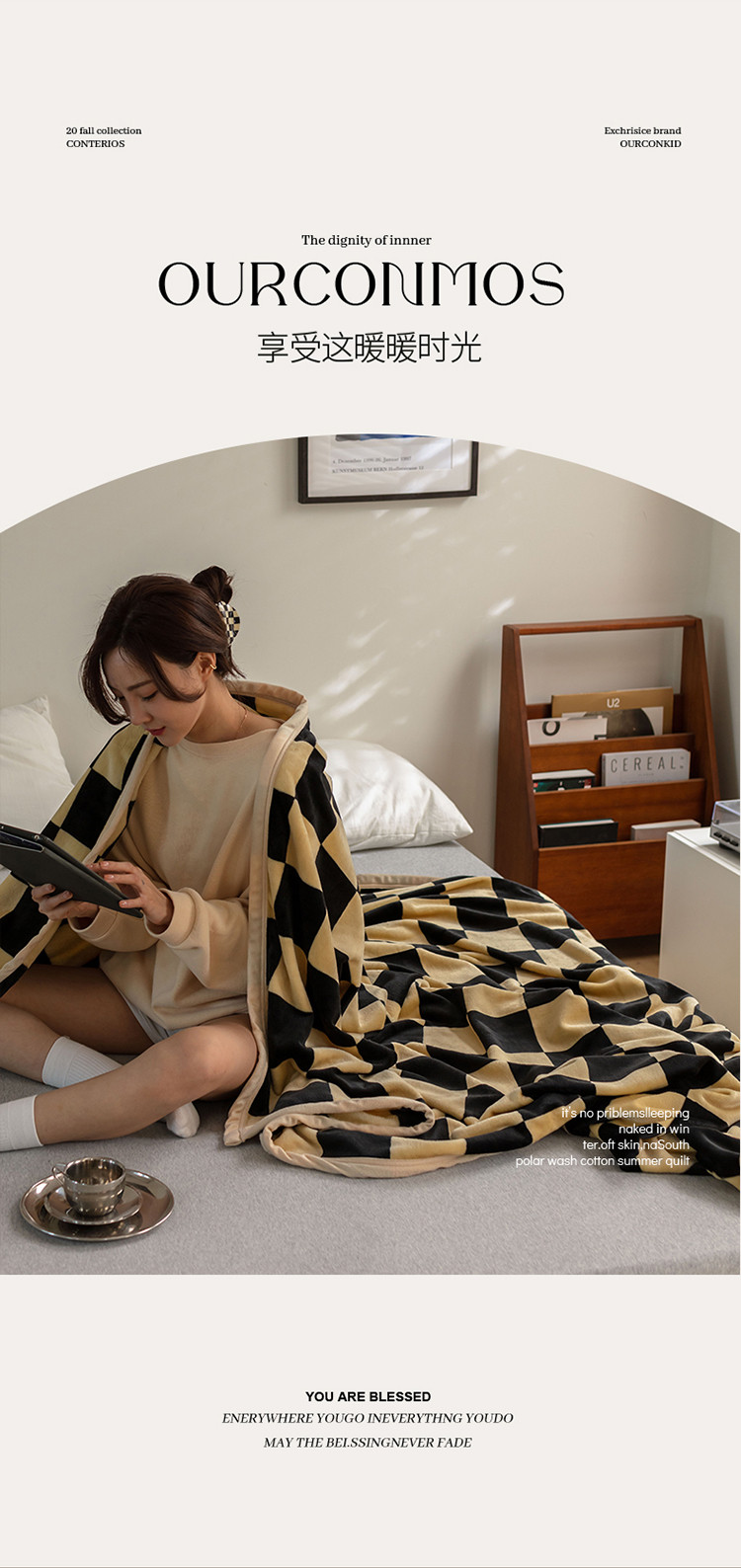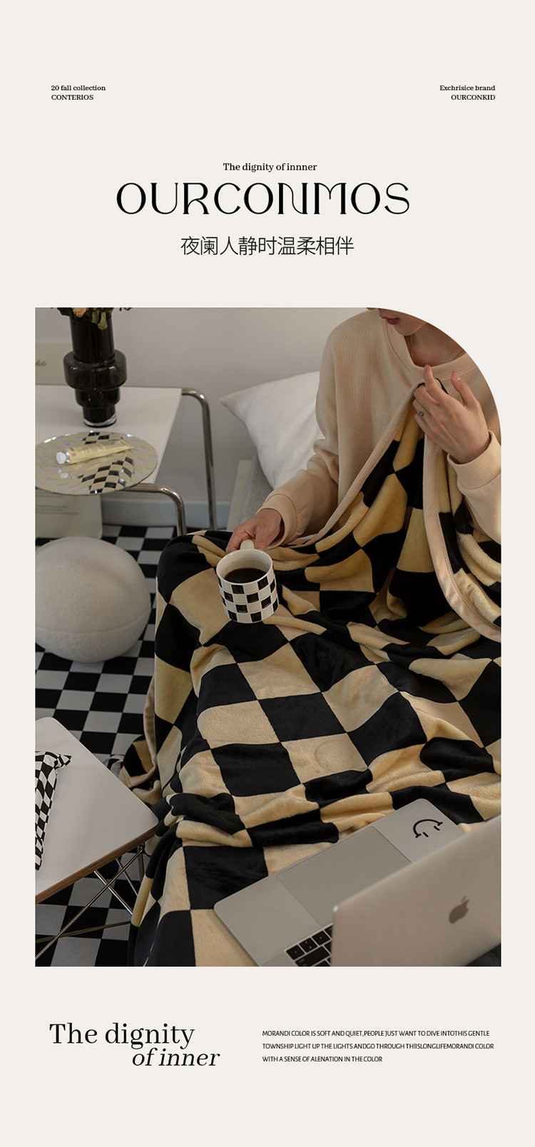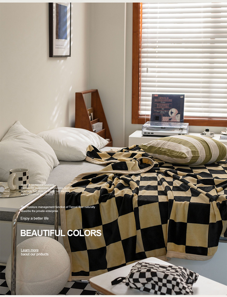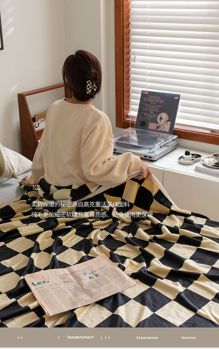 (总)寐眠2021新款法莱绒棋牌格毛毯