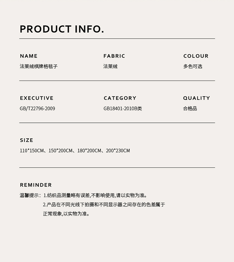 商品名称:(总)寐眠2021新款法莱绒棋牌格毛毯
