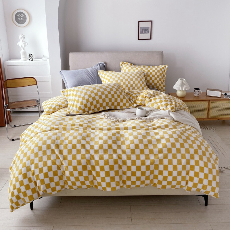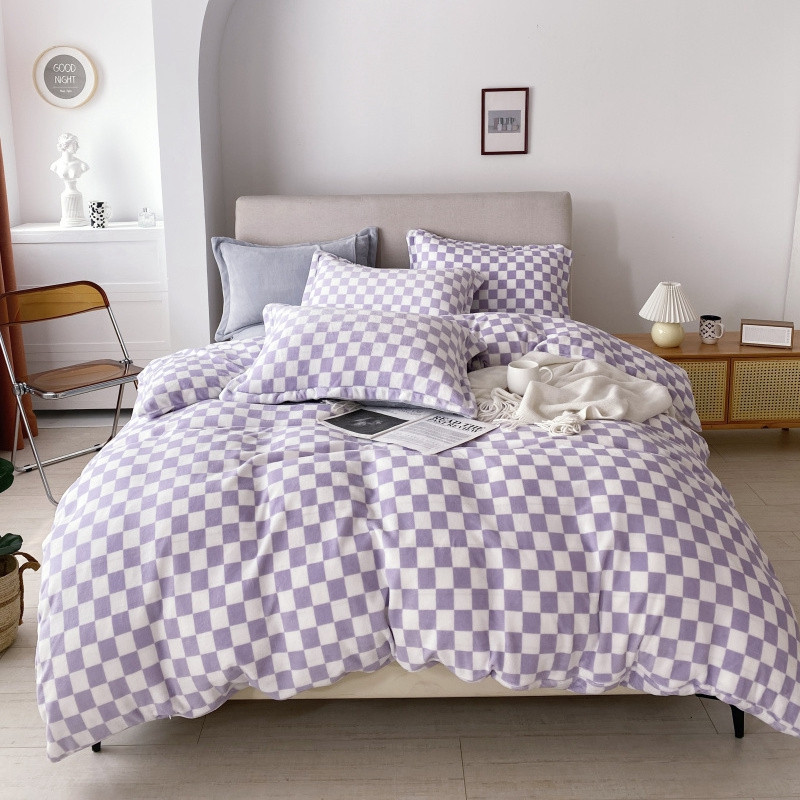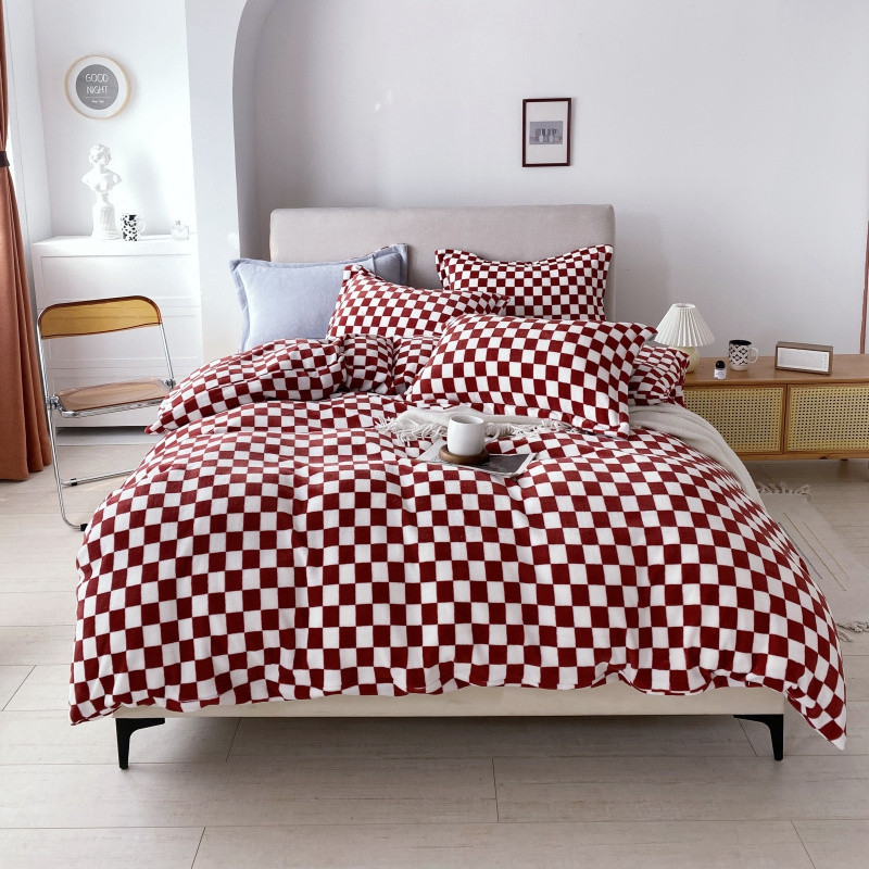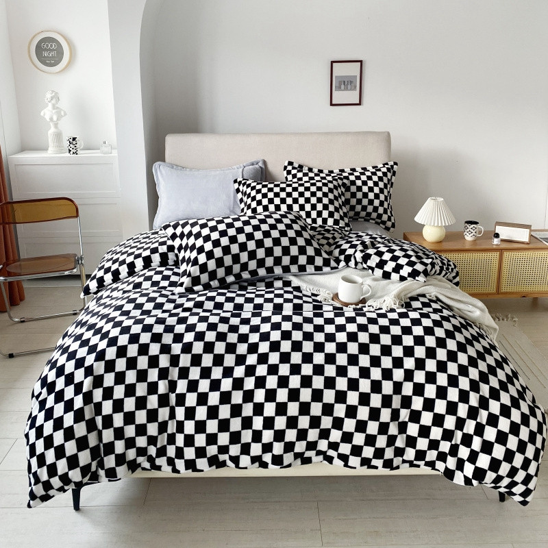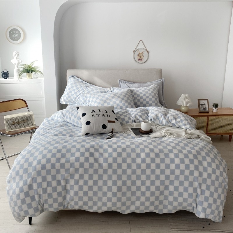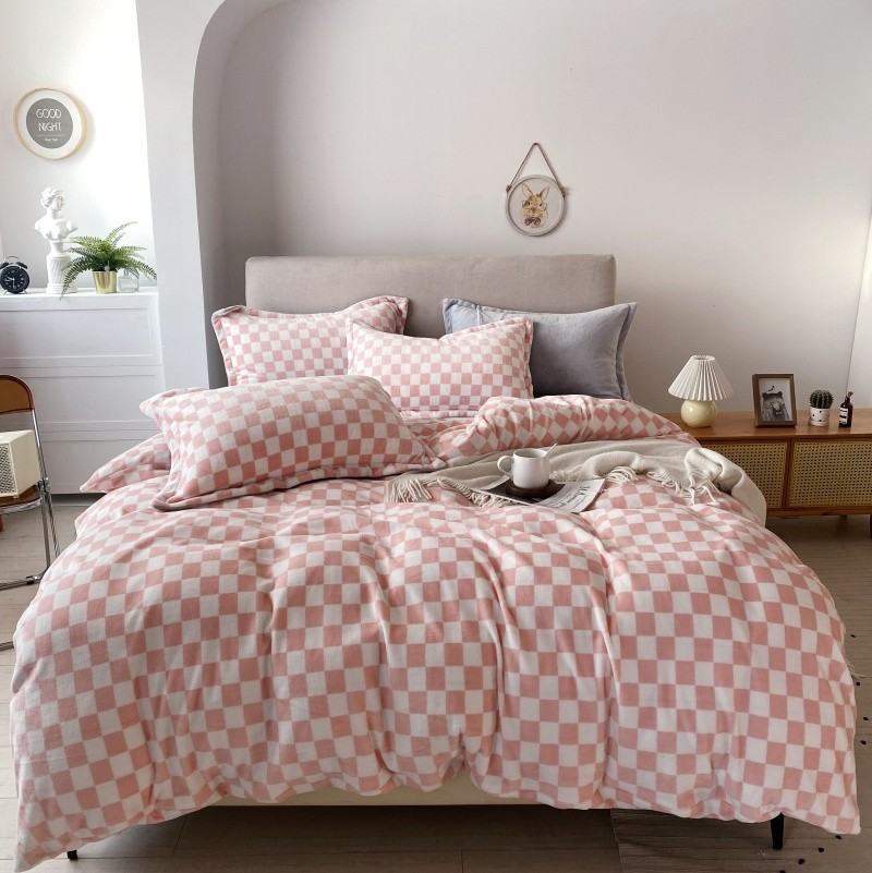 总棉生活2021新款220g牛奶绒ins风绝绝子棋盘格四件套