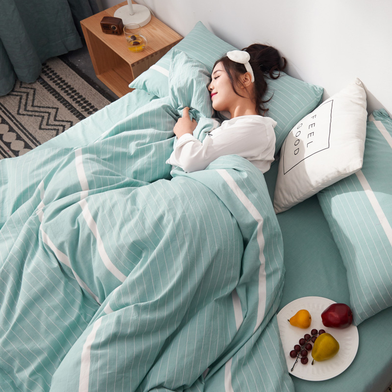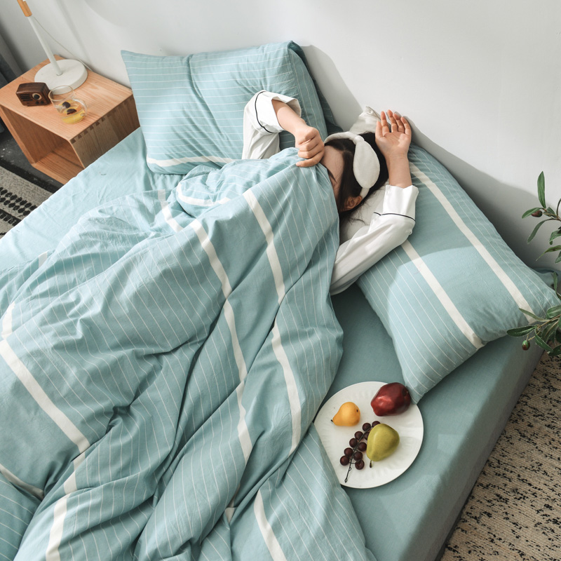柠萌家居 2025新款全棉色织水洗棉床品单被套 宽双线-浅绿