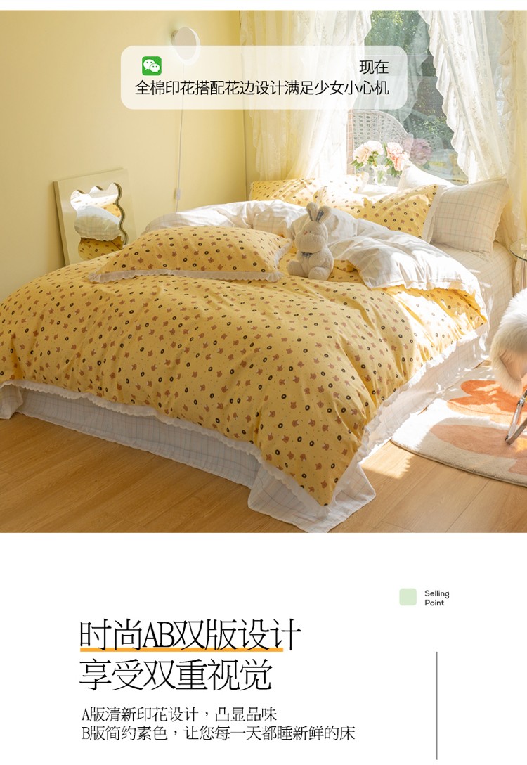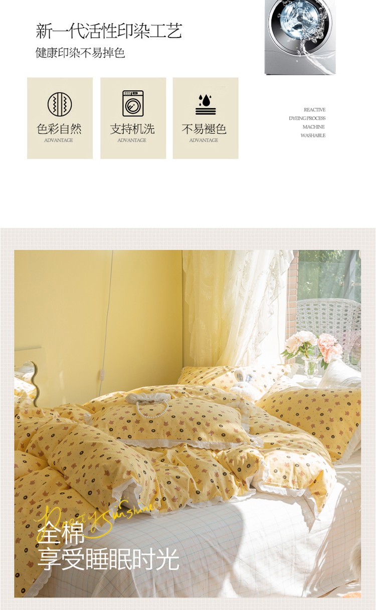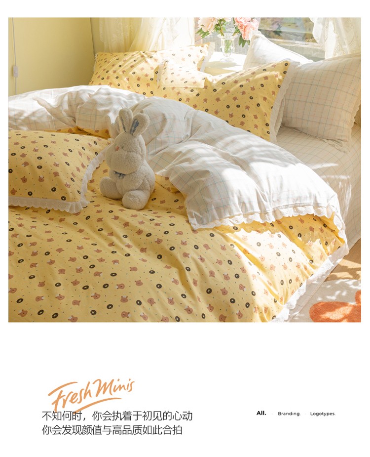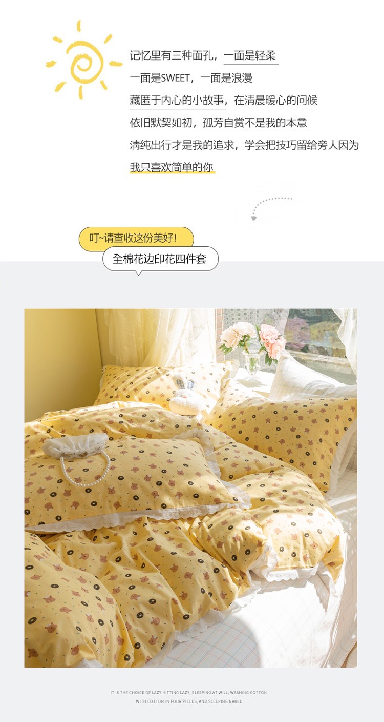 千朵 2021新款13372全棉印花四件套 饼干熊