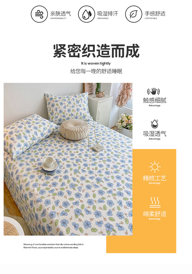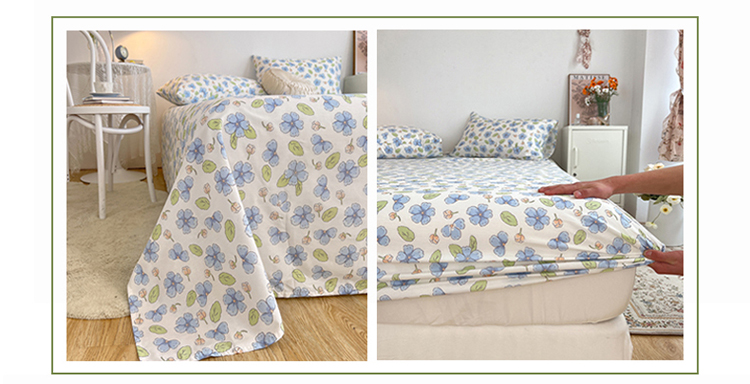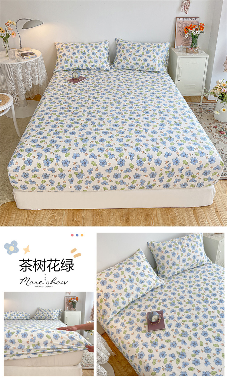 麦伦春季新品全棉40S斜纹印花休闲轻奢系列单品床笠 茶树花绿