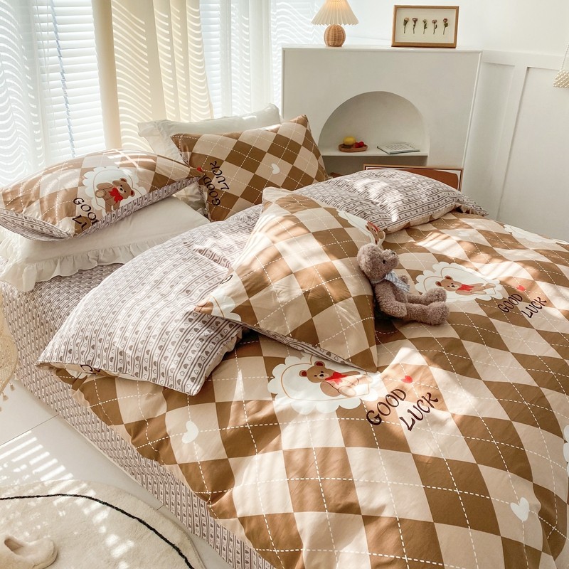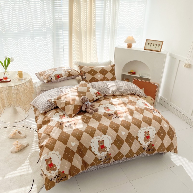 优彩2022新款全棉13372印花单被套 曲奇小熊