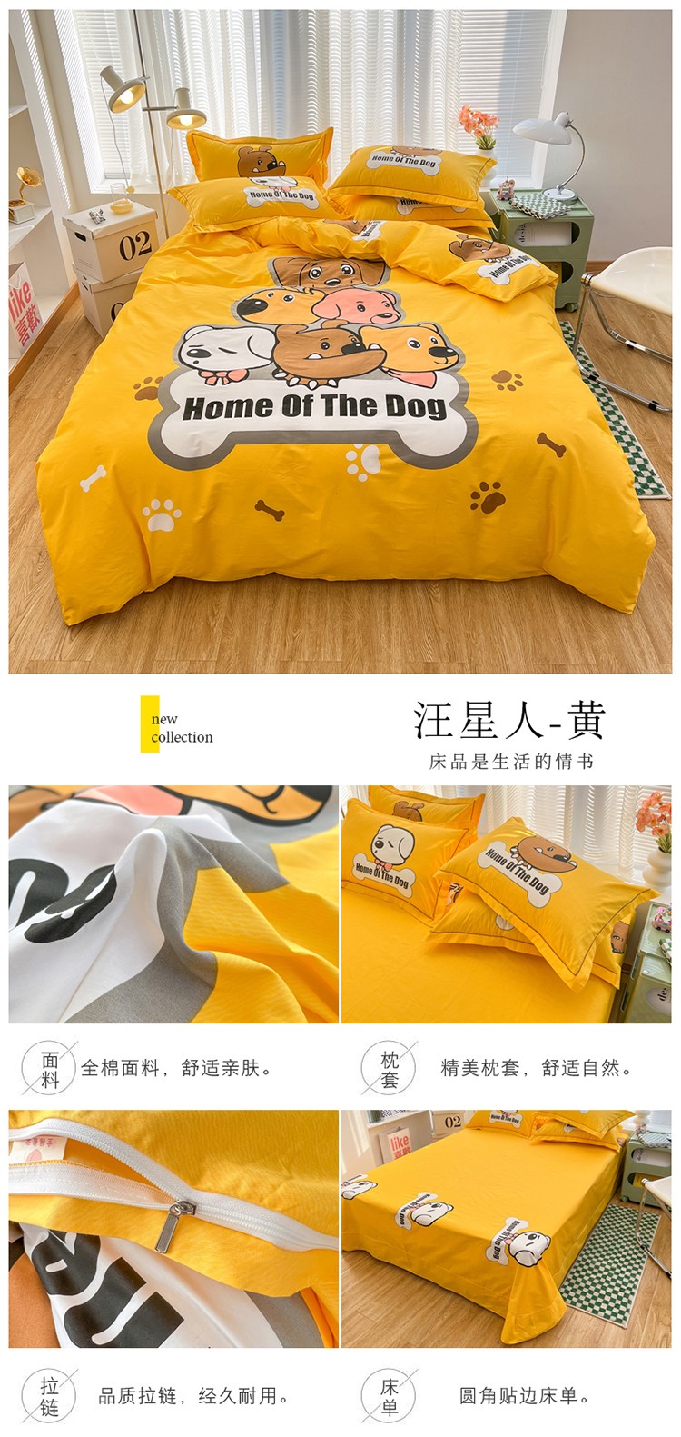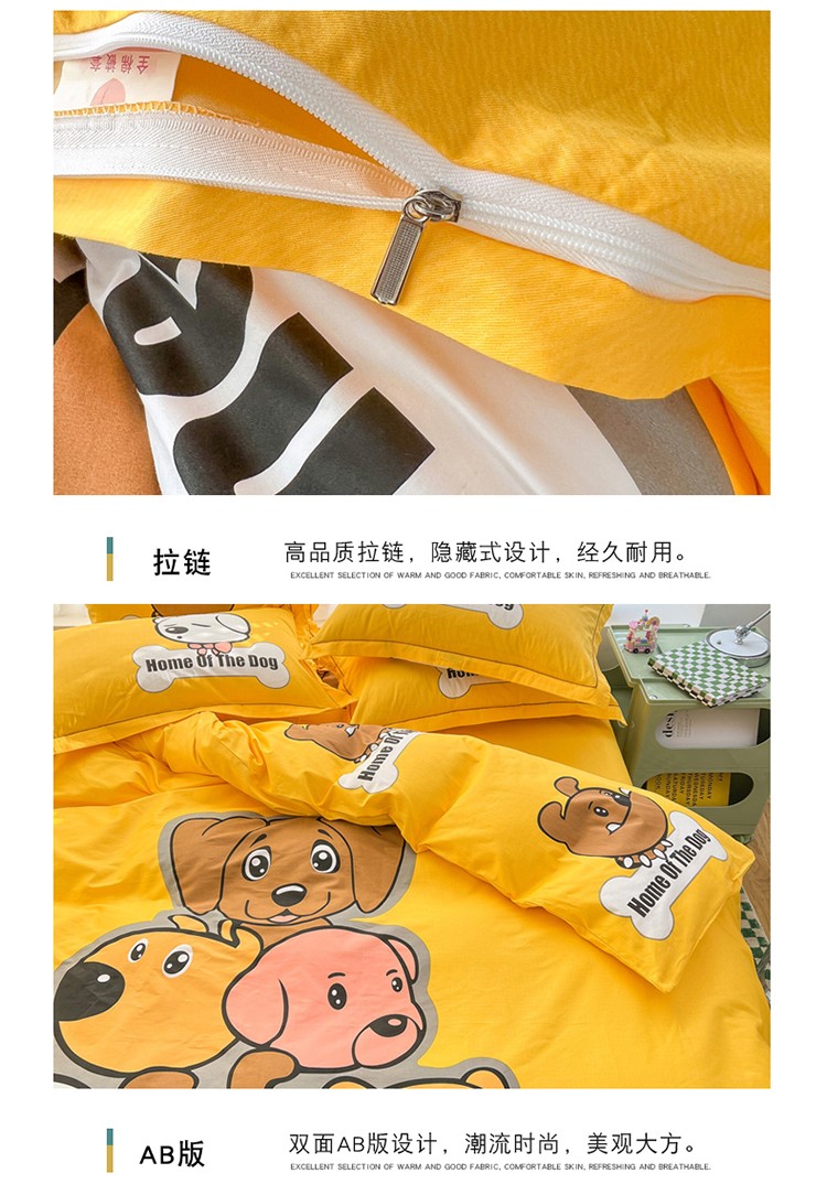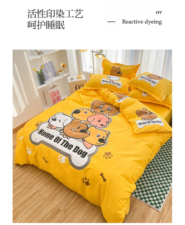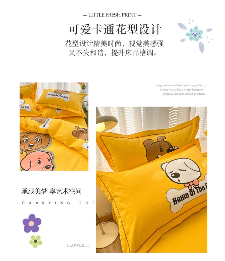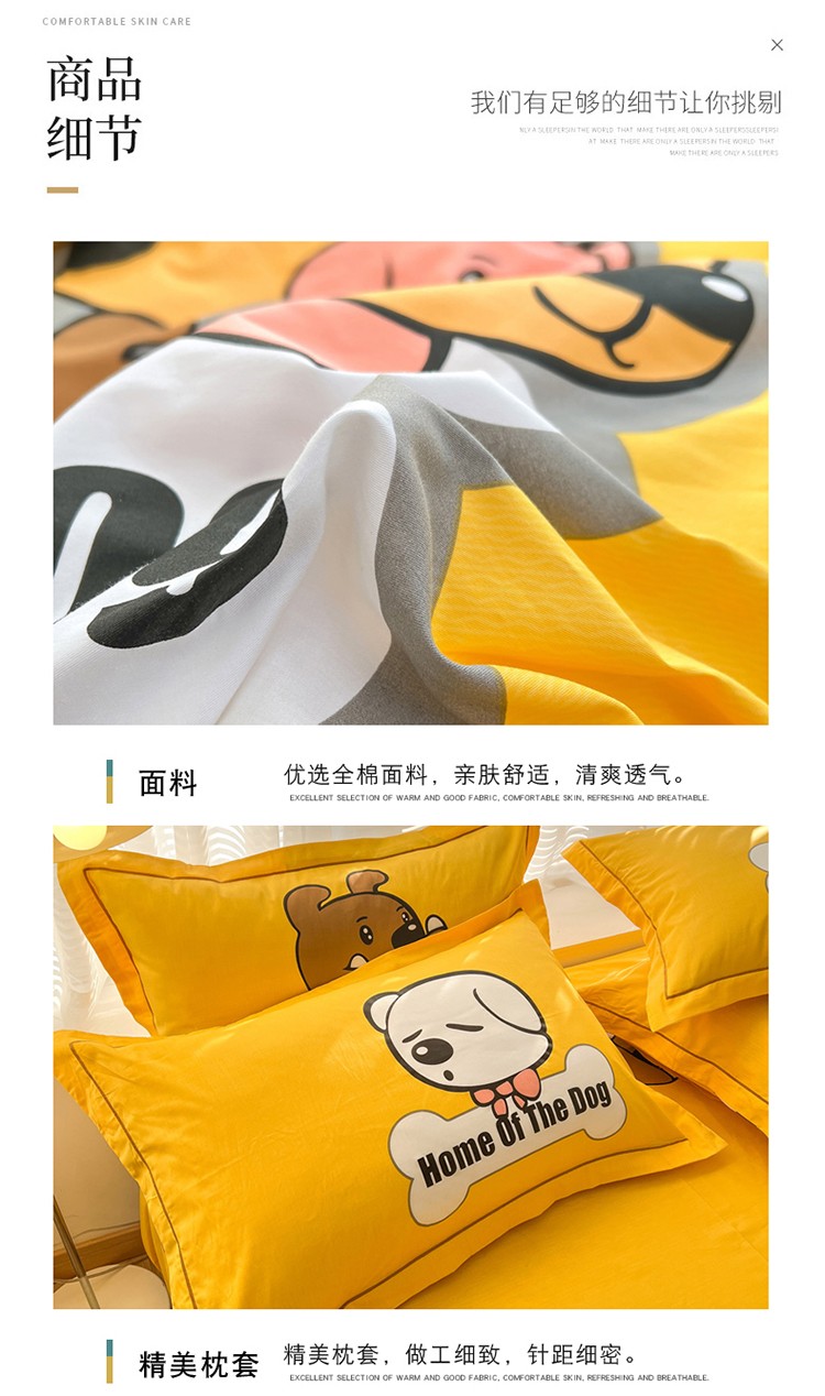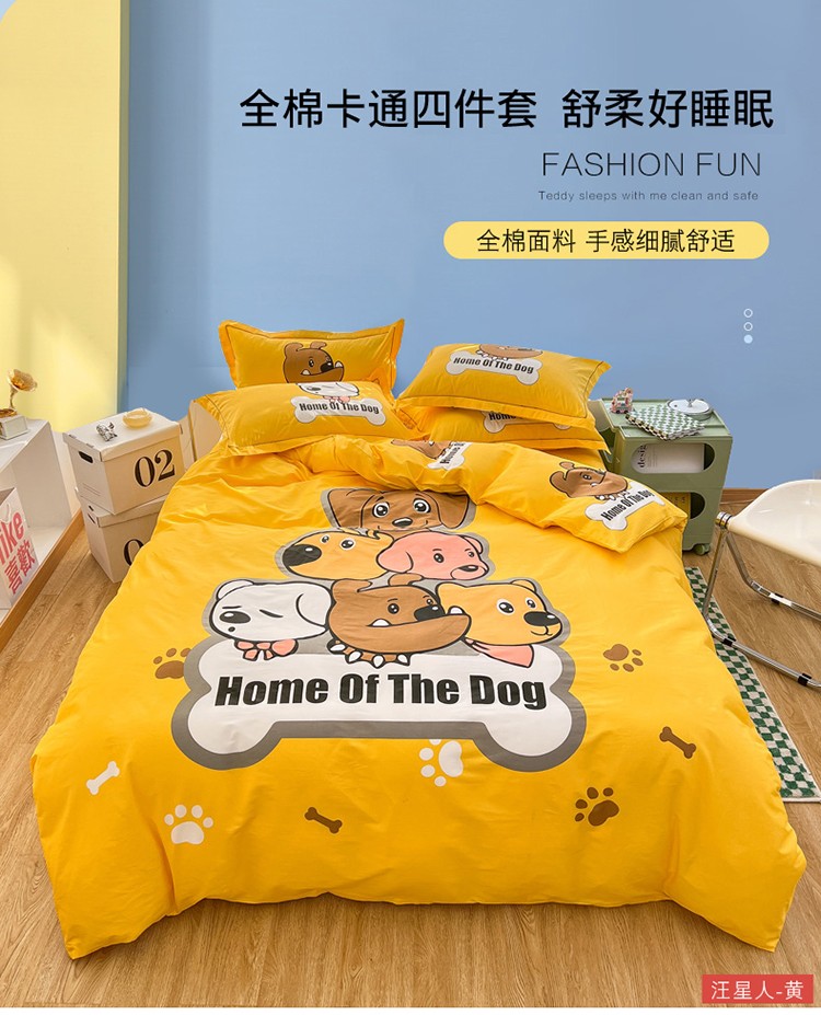 当前位置: 91家纺网 > 商品网购 > 床品套件 > 四件套 > 全棉普通四件套 > 金爱家 2023新款大版纯棉卡通四件套 汪星人-黄