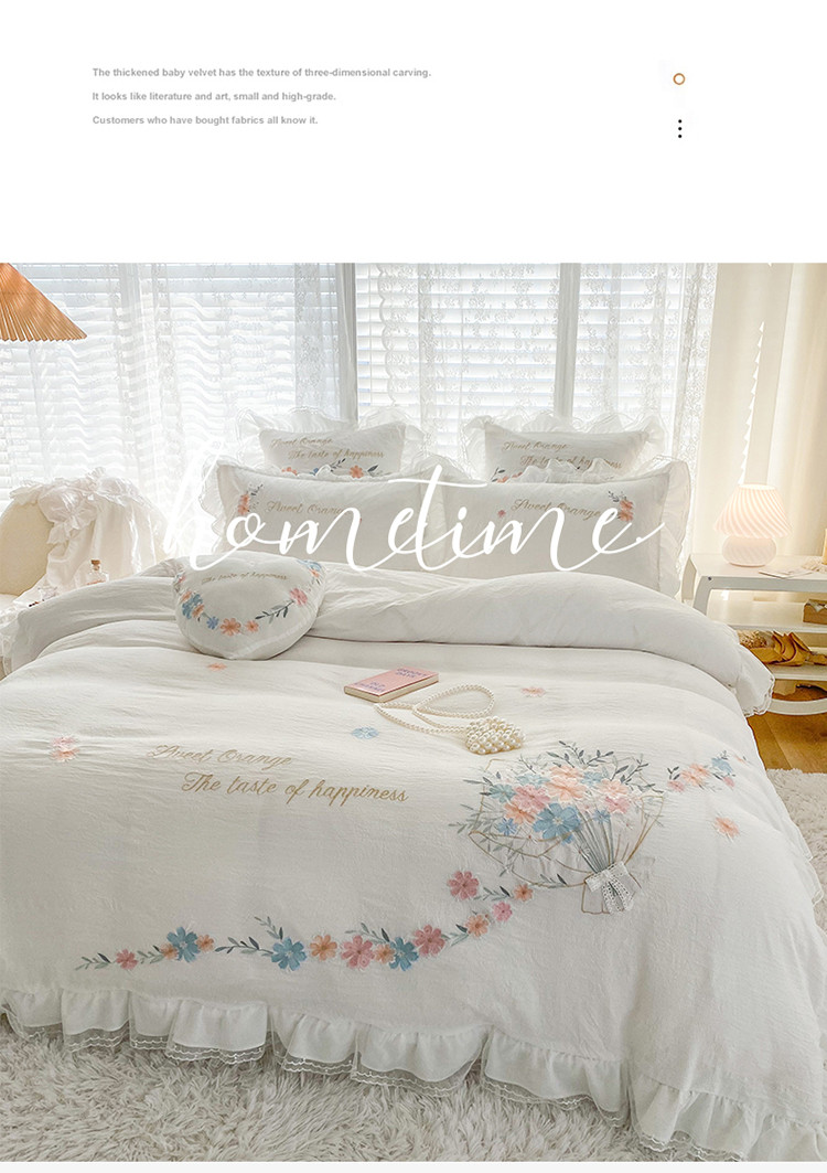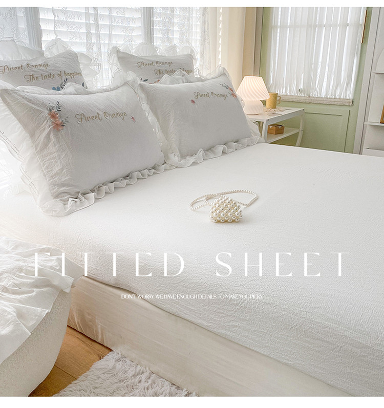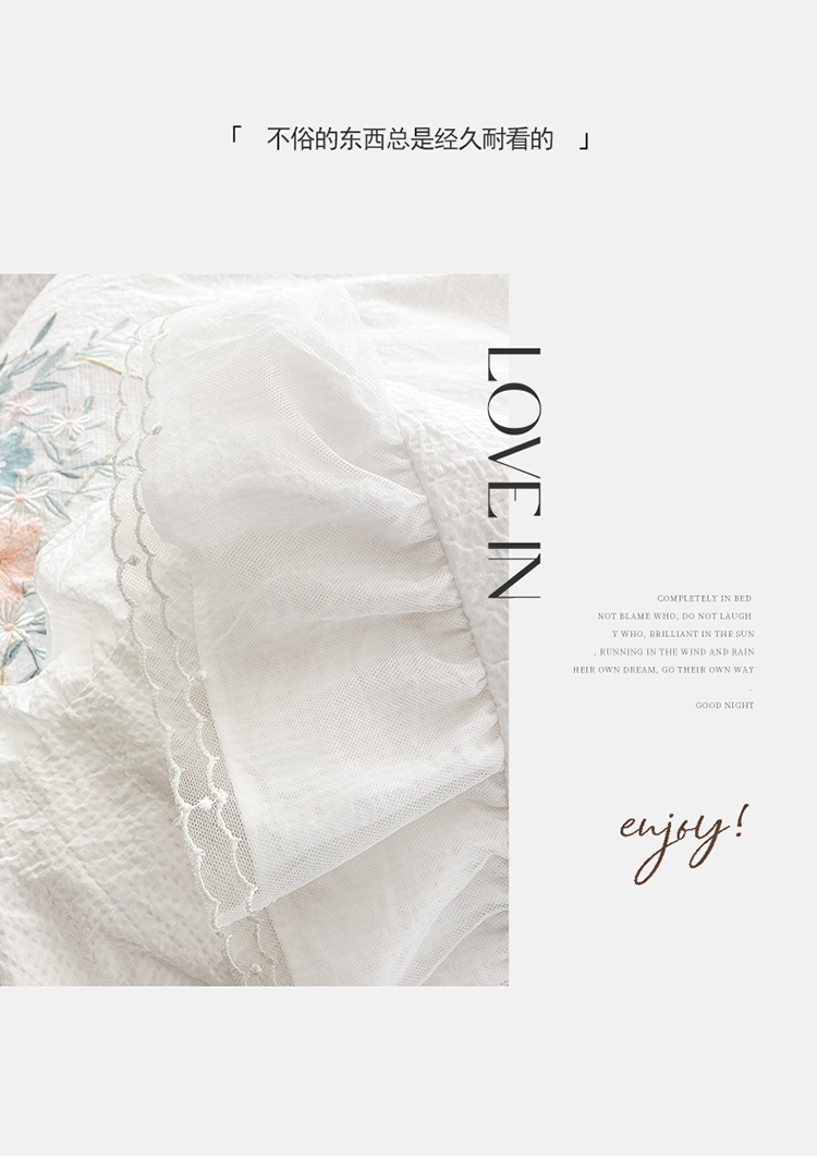 艾晶美家纺 2022新款莱赛尔天丝泡泡纱绣花四件套 巴黎春天-奶白