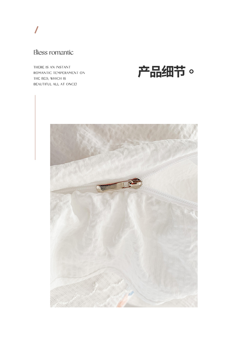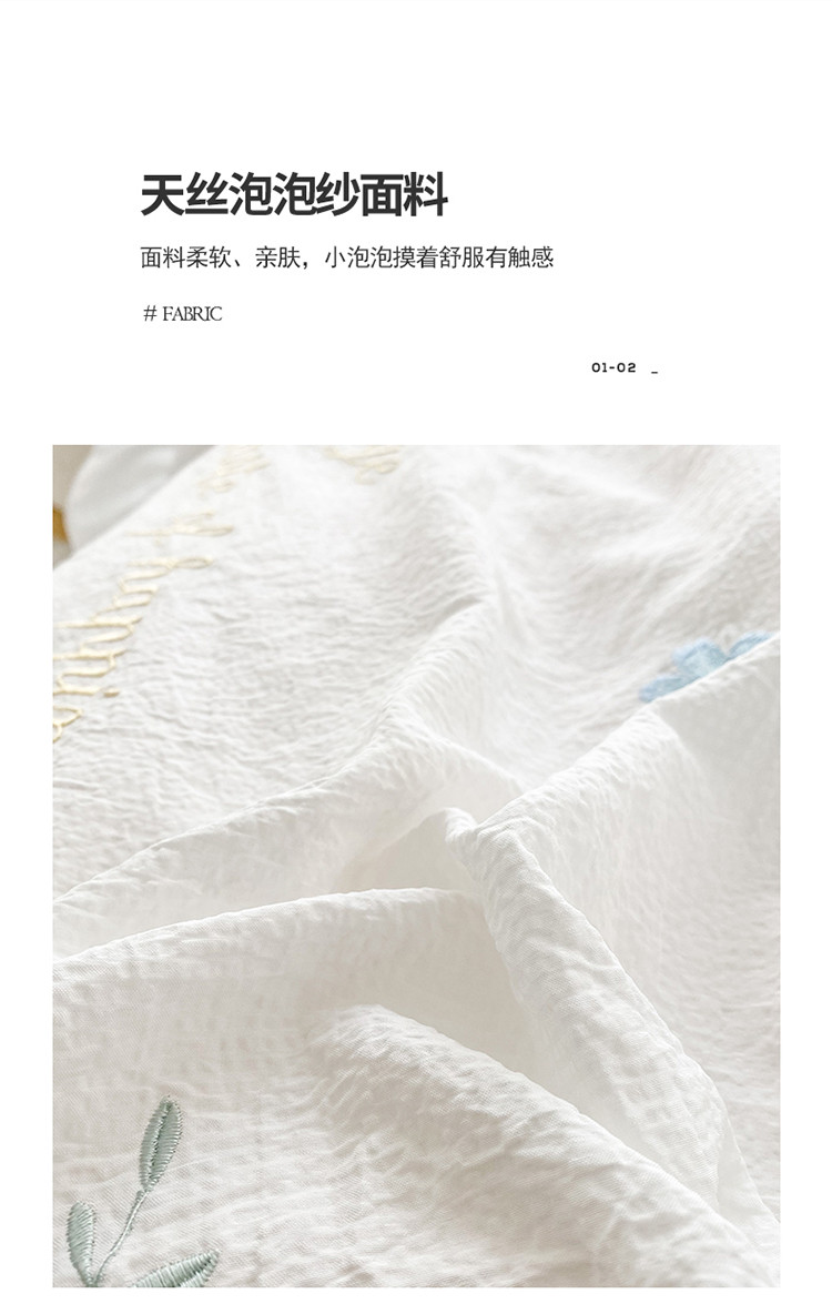 商品名称:艾晶美家纺 2022新款莱赛尔天丝泡泡纱绣花四件套 巴黎春天-奶白