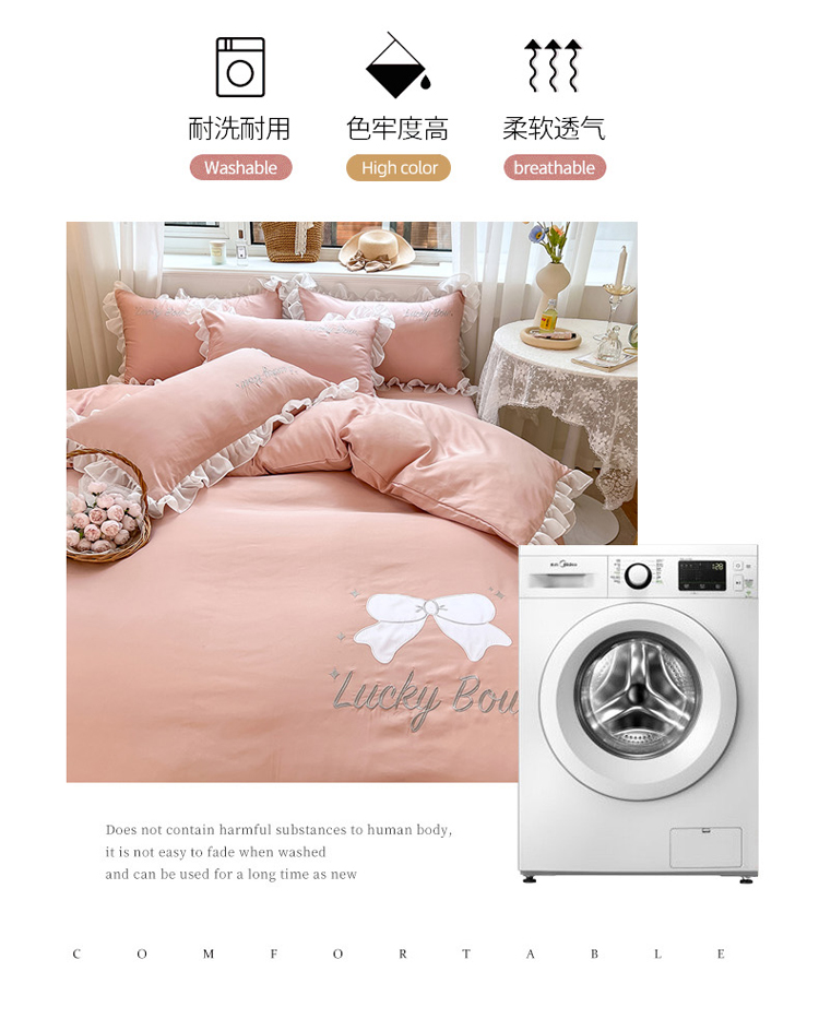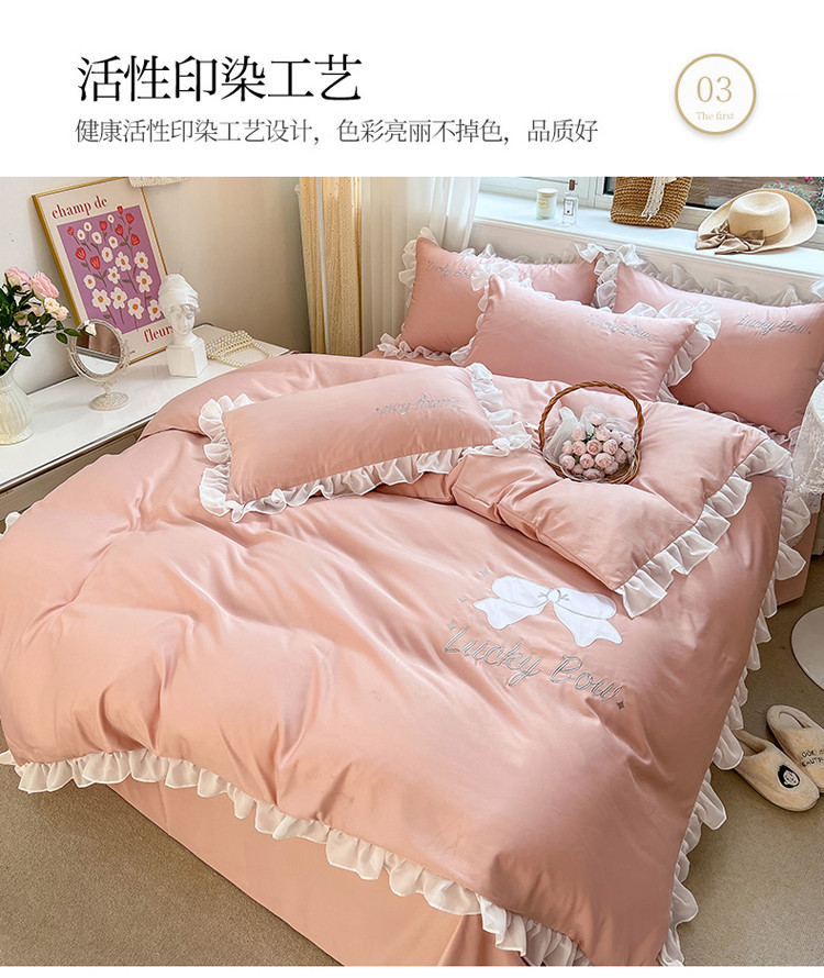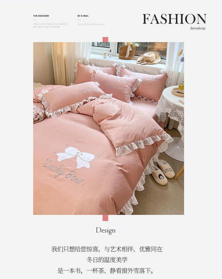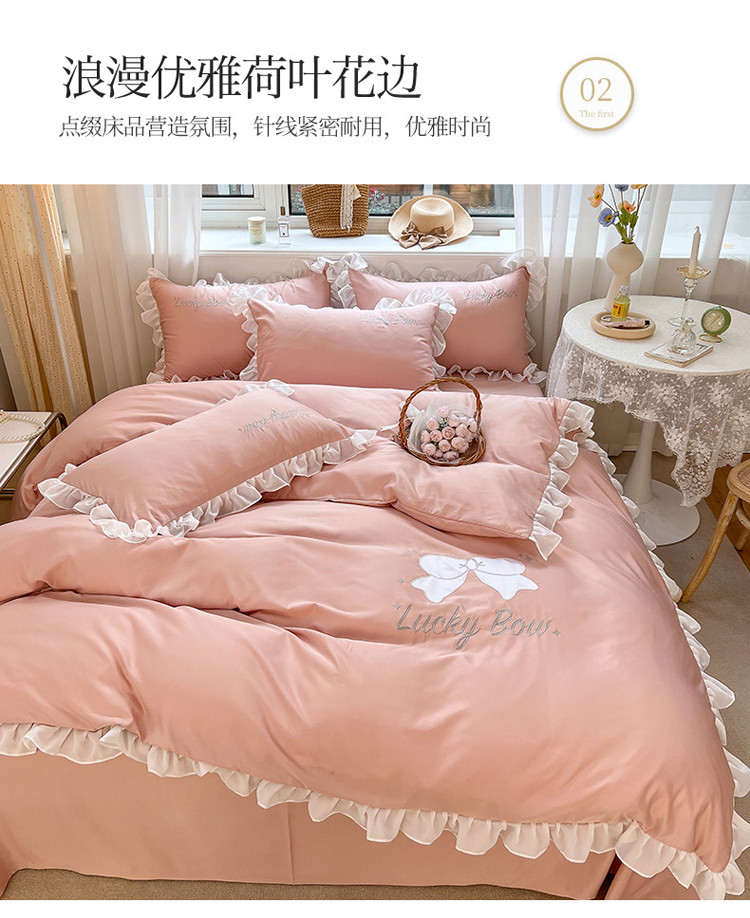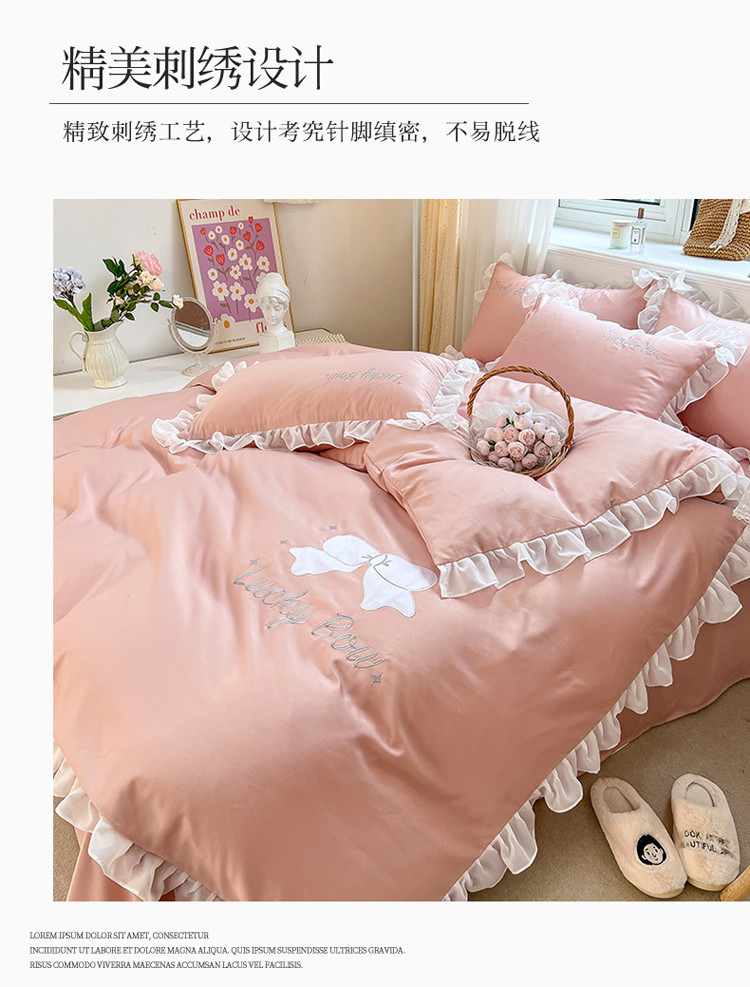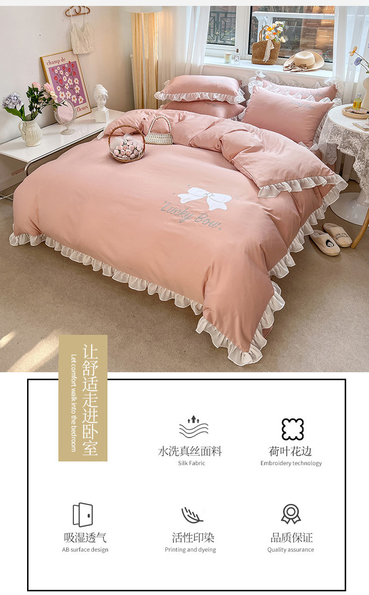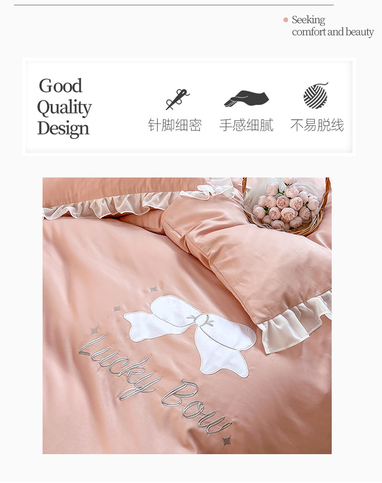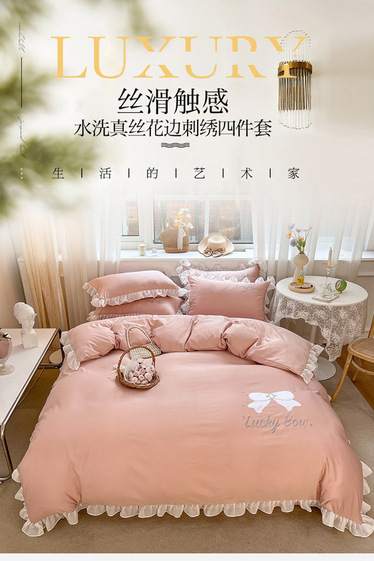 当前位置: 91家纺网 > 商品网购 > 床品套件 > 四件套 > 水洗真丝四件套 > 沐慕 22新款水洗真丝刺绣花边四件套 幸运蝴蝶结-玉粉