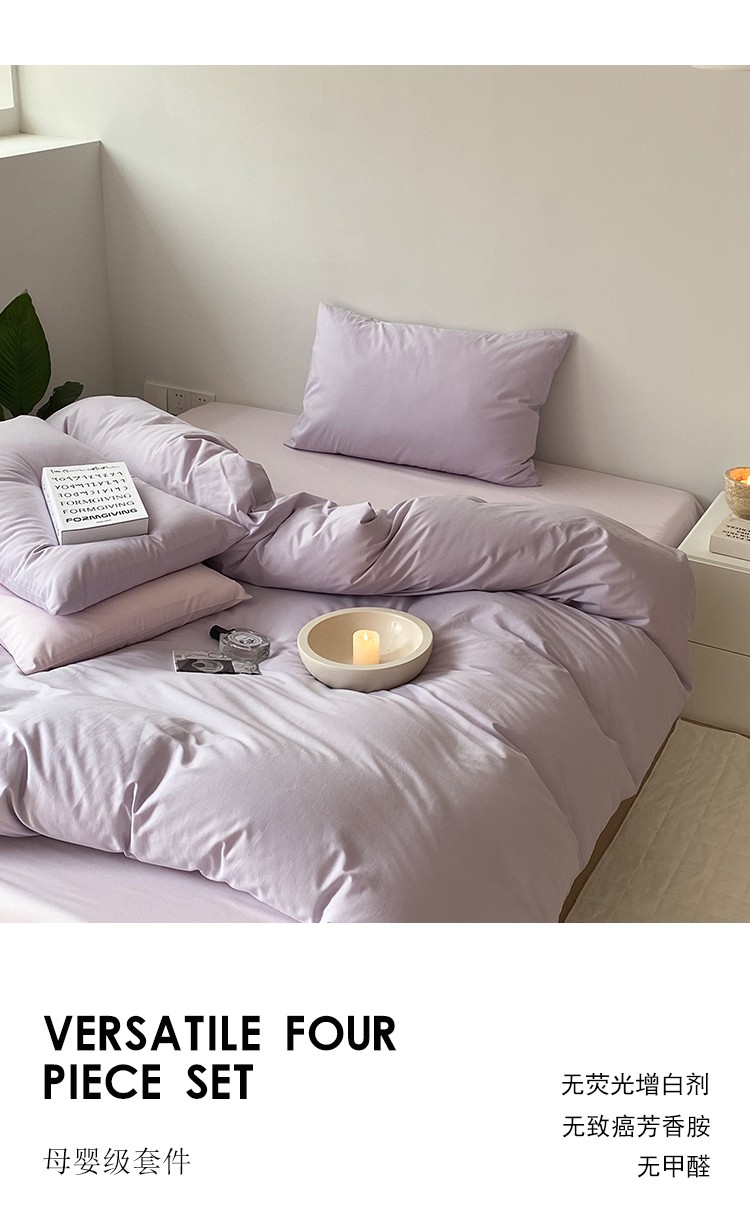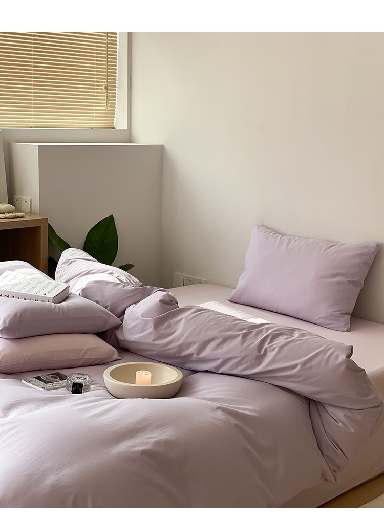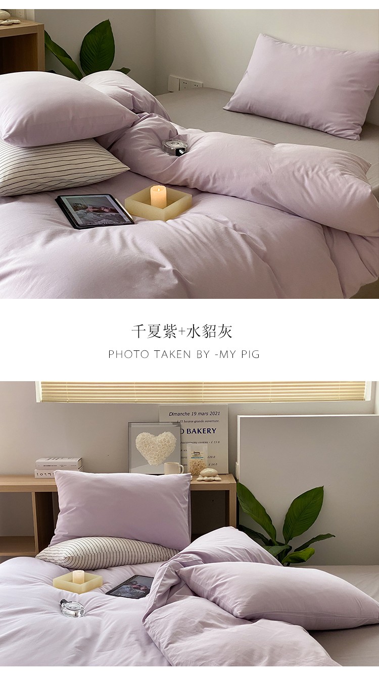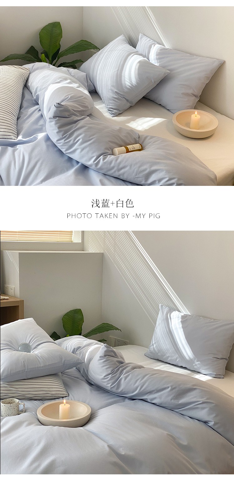 北欧风ins纯棉水洗棉床四件套全棉简约被套床单上三件套床笠,白色+藏青,藏青+浅蓝,鹅黄+螺旋藻绿,鹅黄+牛油果,螺旋藻绿+鹅黄,千夏紫+水貂灰,千夏紫+薇薇紫,薇薇紫+浅灰,浅蓝+鹅黄,浅蓝+白色,浅蓝+藏青