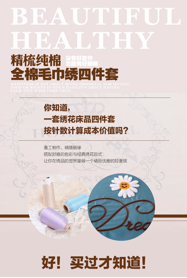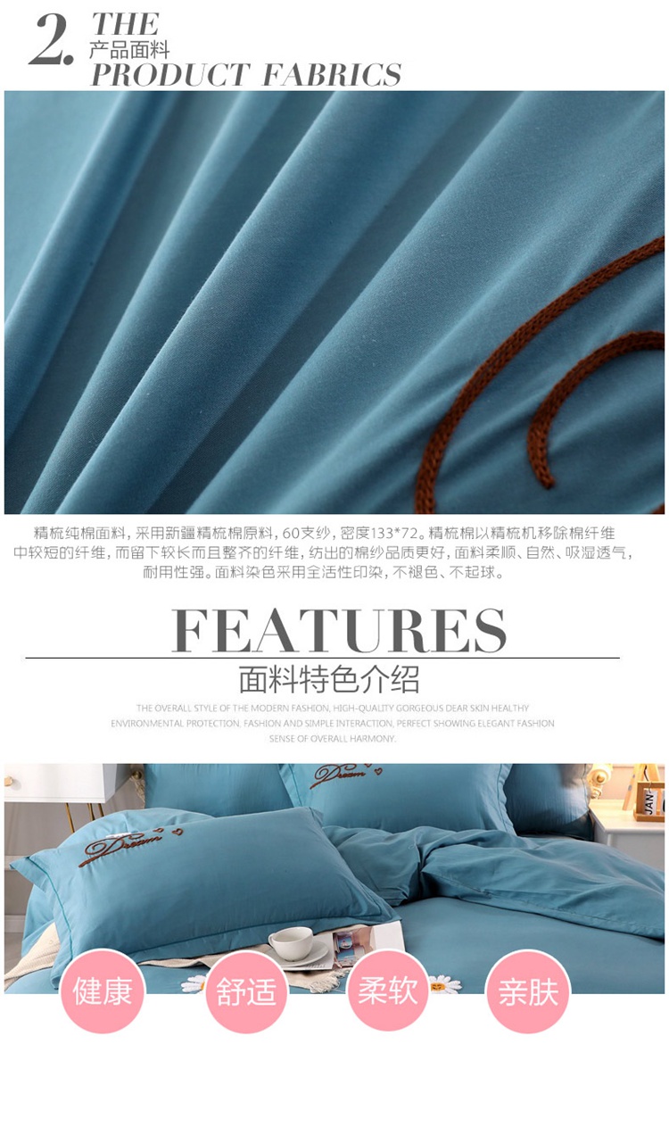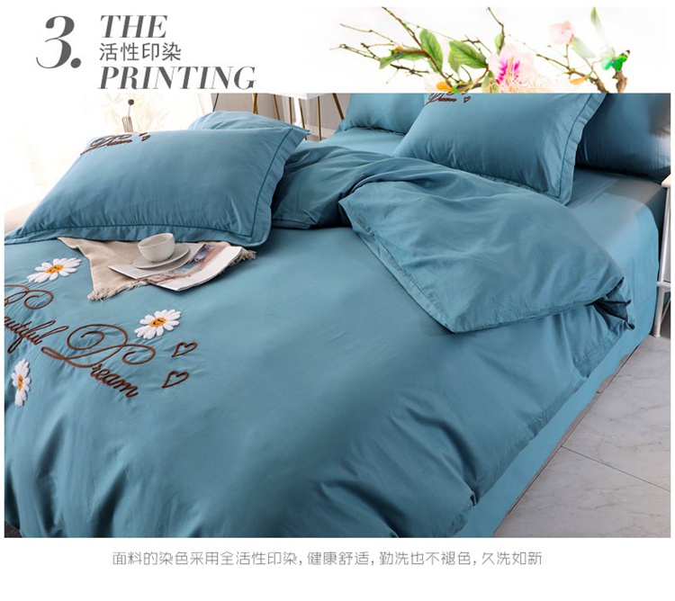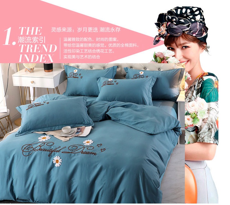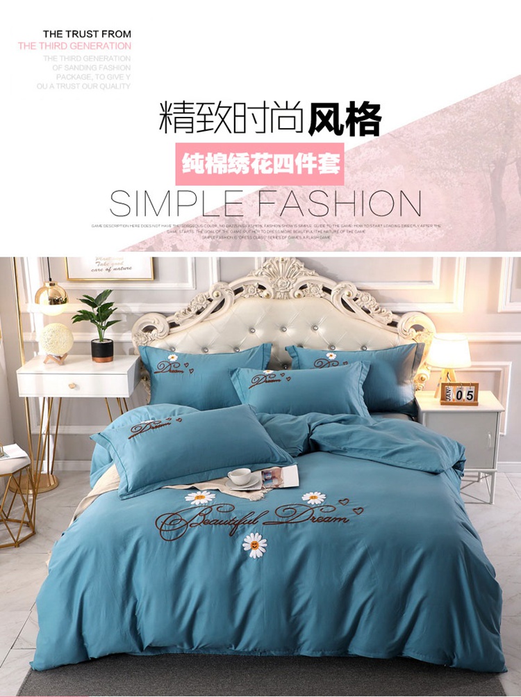 商品名称:2022晶缦雏菊全棉13372毛巾绣四件套 美梦雏菊-湖蓝