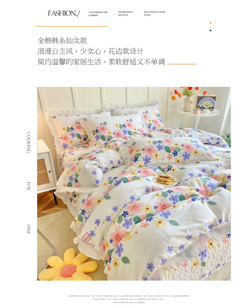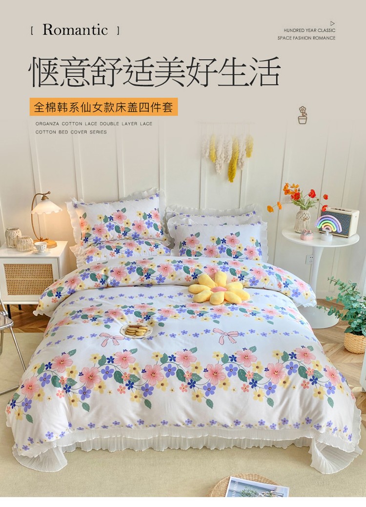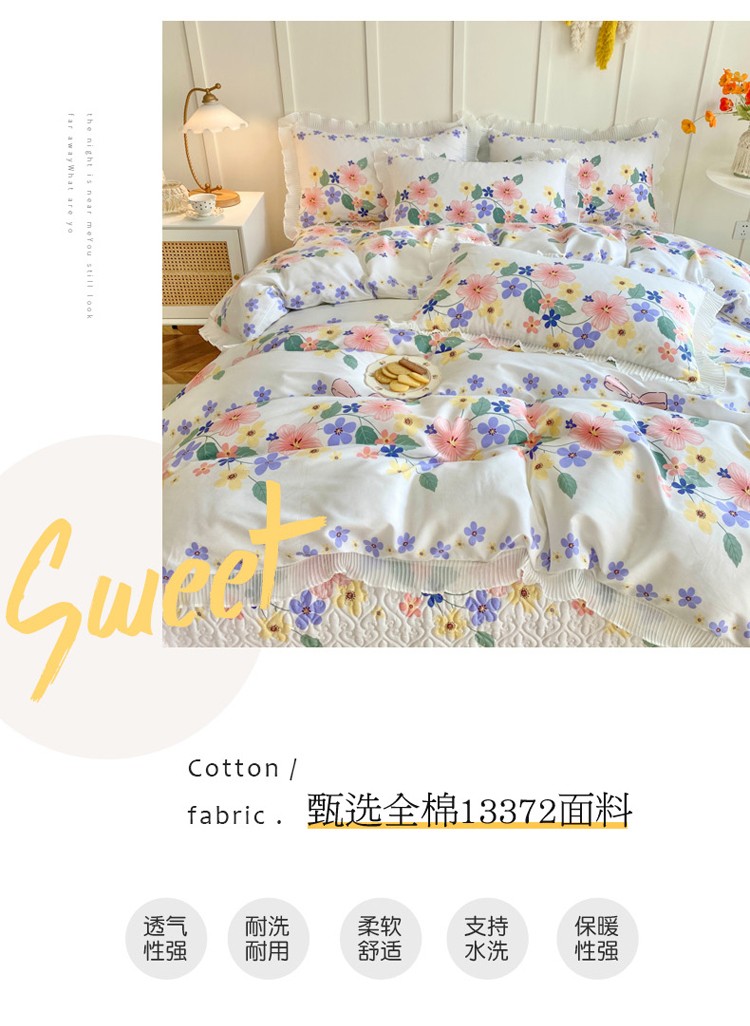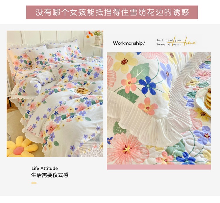 商品名称:星尚 2022新款全棉夹棉床盖仙女系四件套 花香弥漫