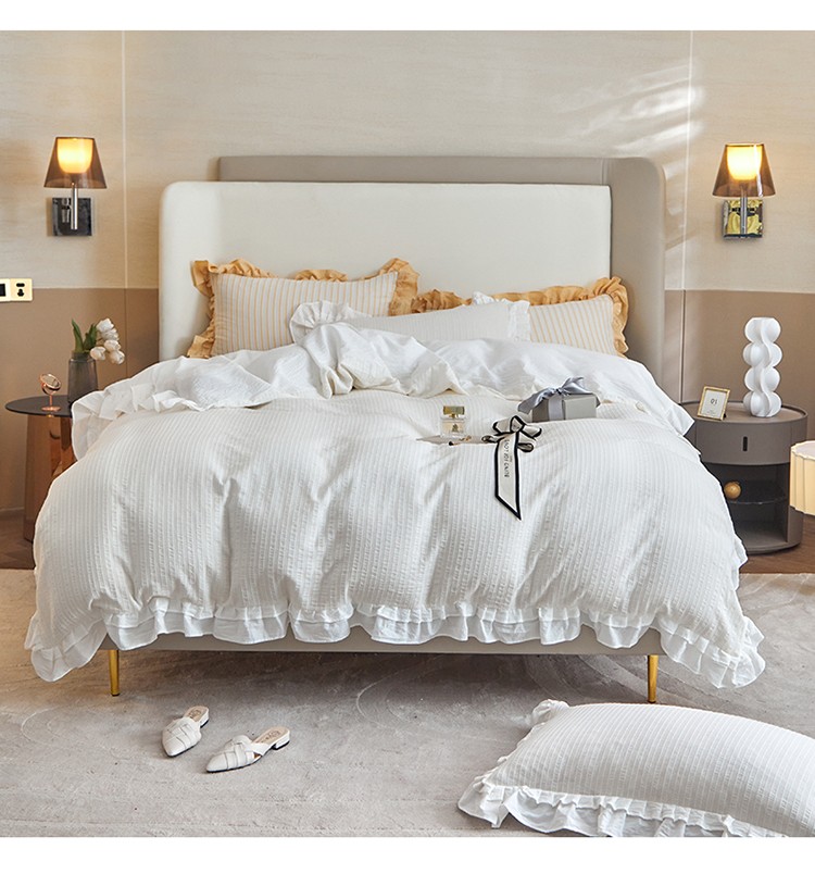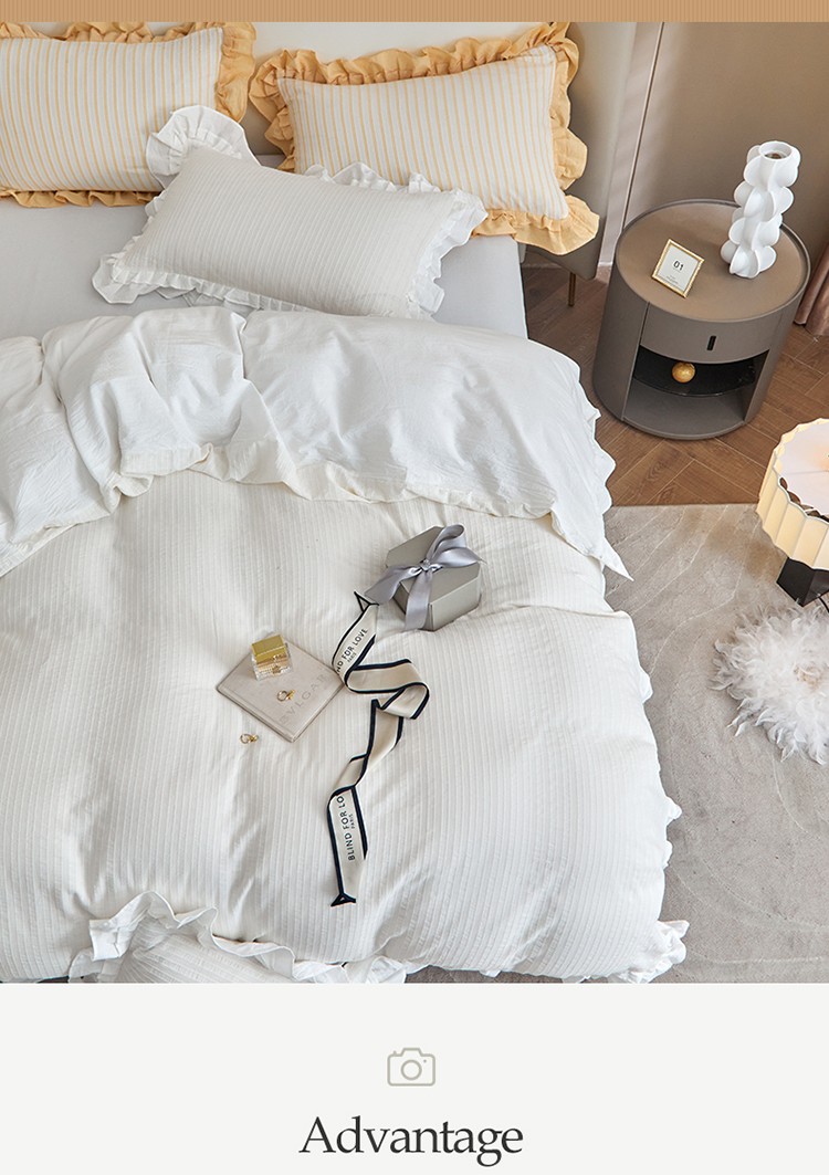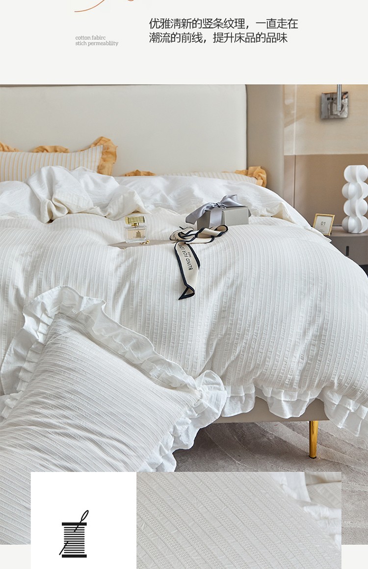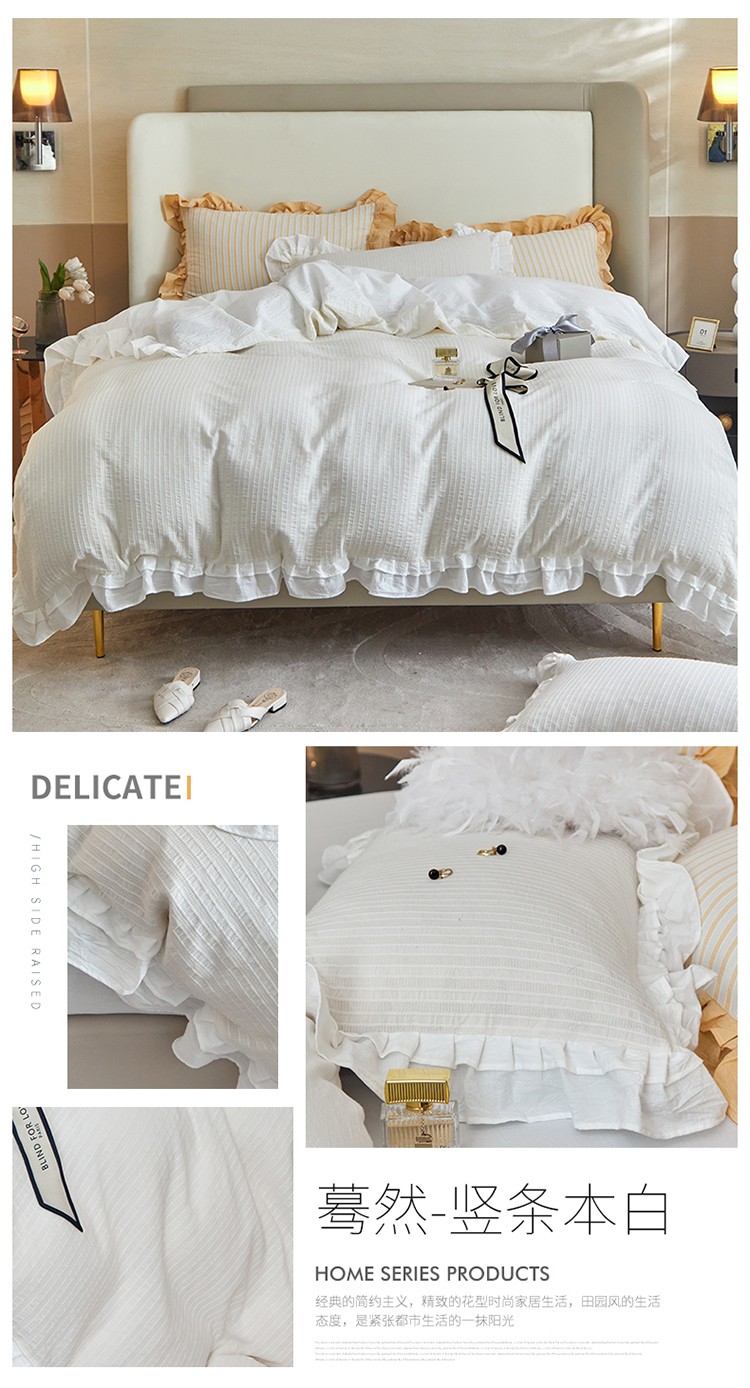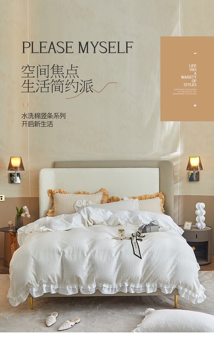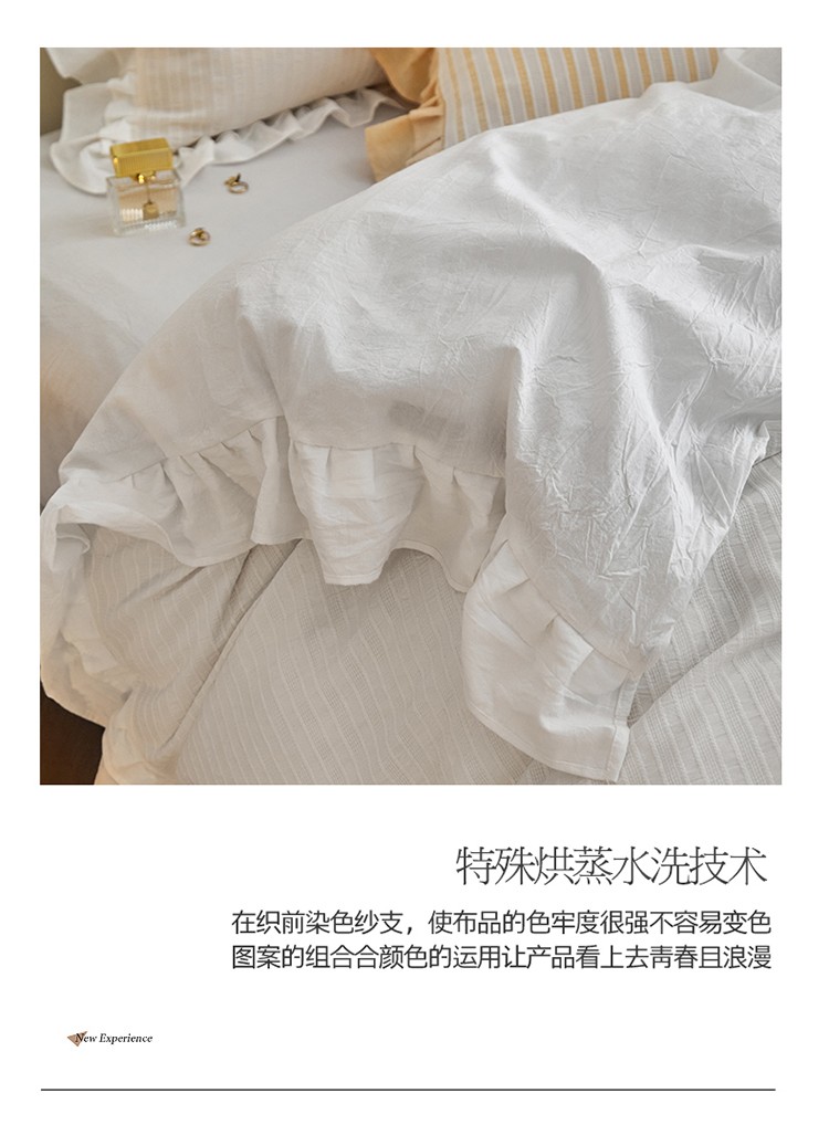 2023名品优仓直播爆款水洗棉四件套竖条系列 蓦然-竖条本白