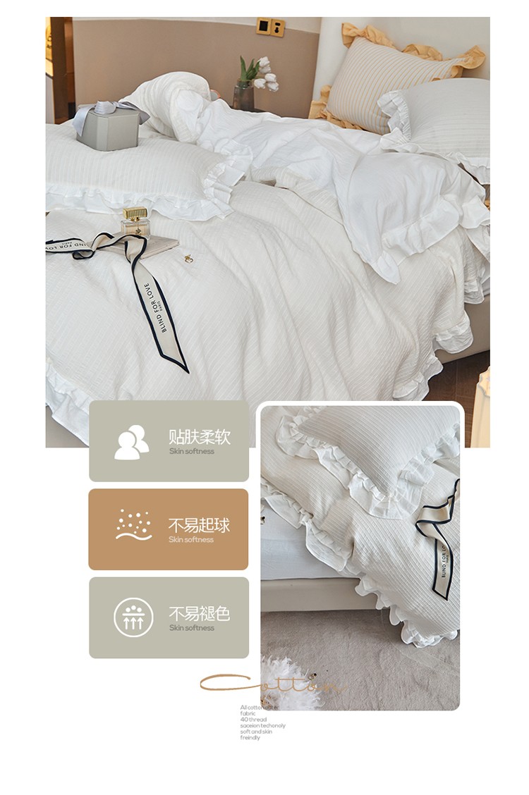 (总)名品优仓2023款水洗棉三层纱提花四件套-狡花系列,狡花白,狡花豆粉,狡花黄,狡花蓝色,狡花绿,狡花少女粉