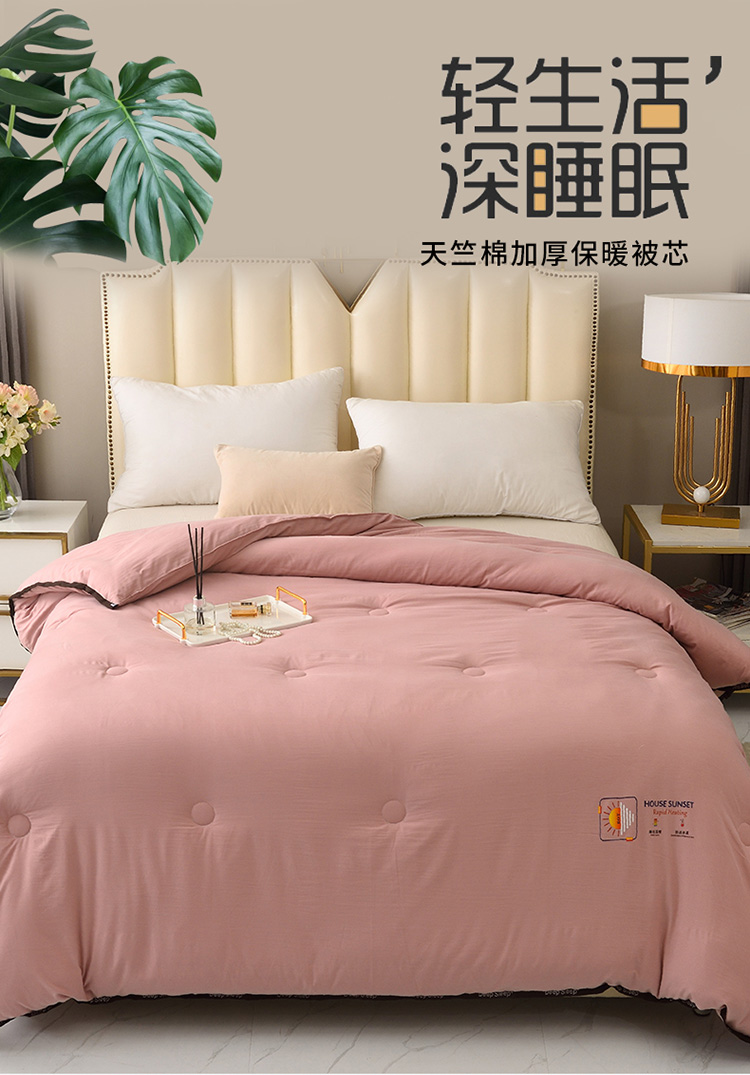• 91家纺网 家纺一手货源 找家纺 德芙 2023新款运动风纯色超柔天竺棉被 胭脂粉