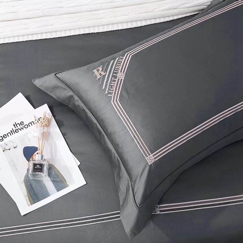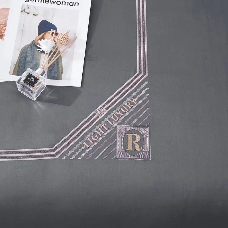 威克凯丽2022全工艺绣花100支长绒棉四件套兰迪摩尔-灰