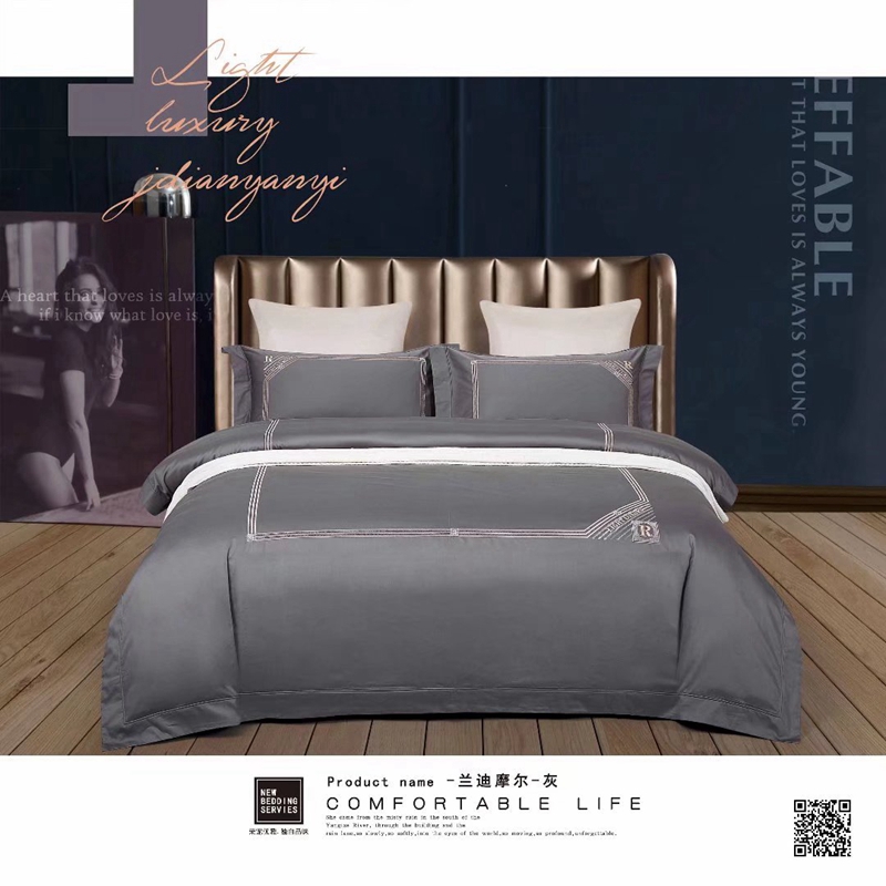 商品名称:威克凯丽2022全工艺绣花100支长绒棉四件套兰迪摩尔-灰